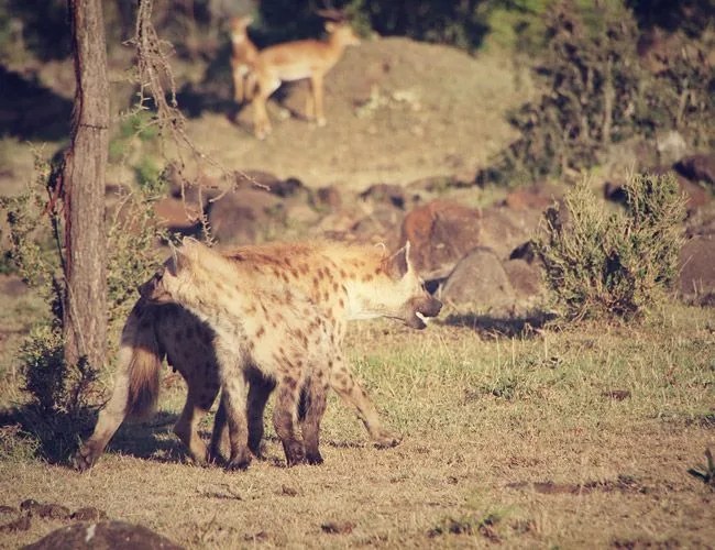 The Masai Mara National Reserve on Kenya’s southwestern border with Tanzania is blanketed with large mammals, so heavily in fact that it takes a day or two to register that the animals are real and not holographic or cutouts from a National Geographic photo spread. This is what happens when you combine a life spent mostly staring into a computer with the ease of international travel. One day I’m in Crown Heights, Brooklyn; 24 hours and four airplane meals later, I’m on safari in the African savanna. The rapid change of scenery can give vacation a dream-like quality. What unsettles the reality principle further is that the animals stare right back at our vehicle, look right down the barrel of my lens for a good long while before scuttering off. I feel like the animal. It is the antelope that watches me.