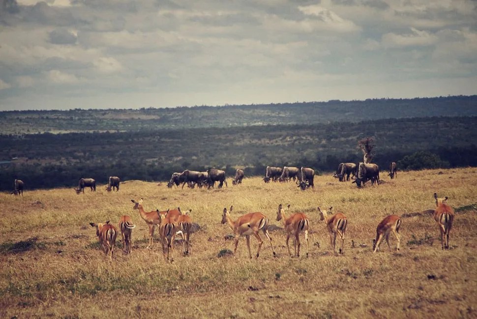 Chief among the gawkers are giraffe, who as the tallest terrestrial animals are exceptionally fit for surveying the lay of the land, and the wildebeest, the most abundant mammal in East Africa and also the least visually appealing, with a jerky half-sideways gait and a devilish face. This animal is known in the safari community for its annual migration: What happens is that every year more than a million wildebeest, joined by zebra and other antelope (of which the wildebeest is one) move in a clockwise direction from the Serengeti in northern Tanzania, up into the Mara, and then back down again. It’s one of nature’s great symphonies, plus lots of the wildebeest give up the ghost to lions — so there’s something for everyone.