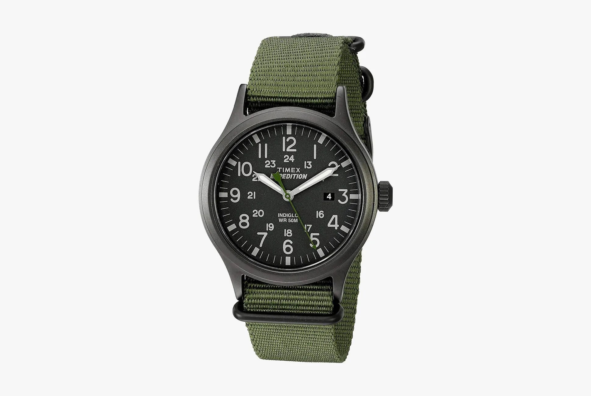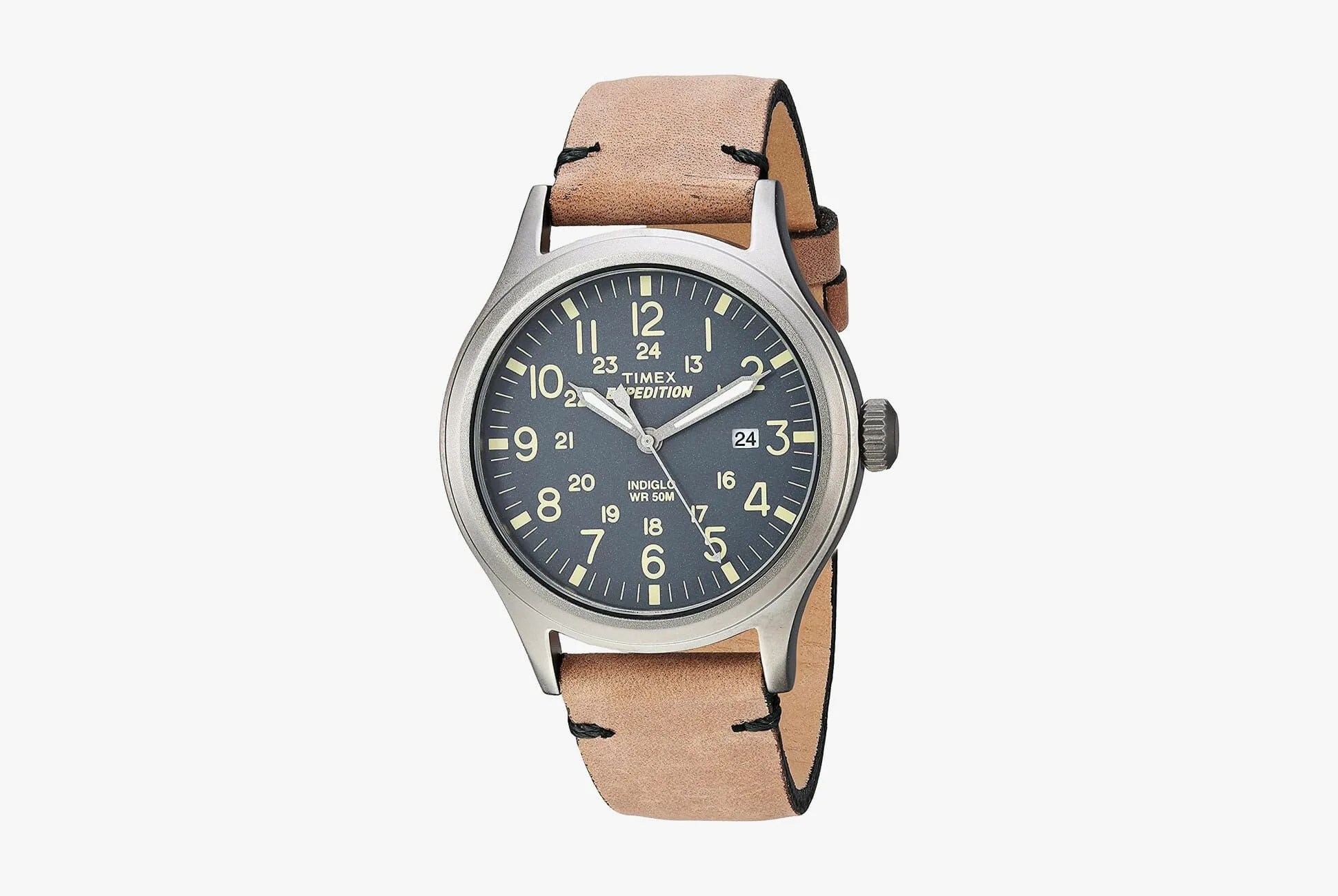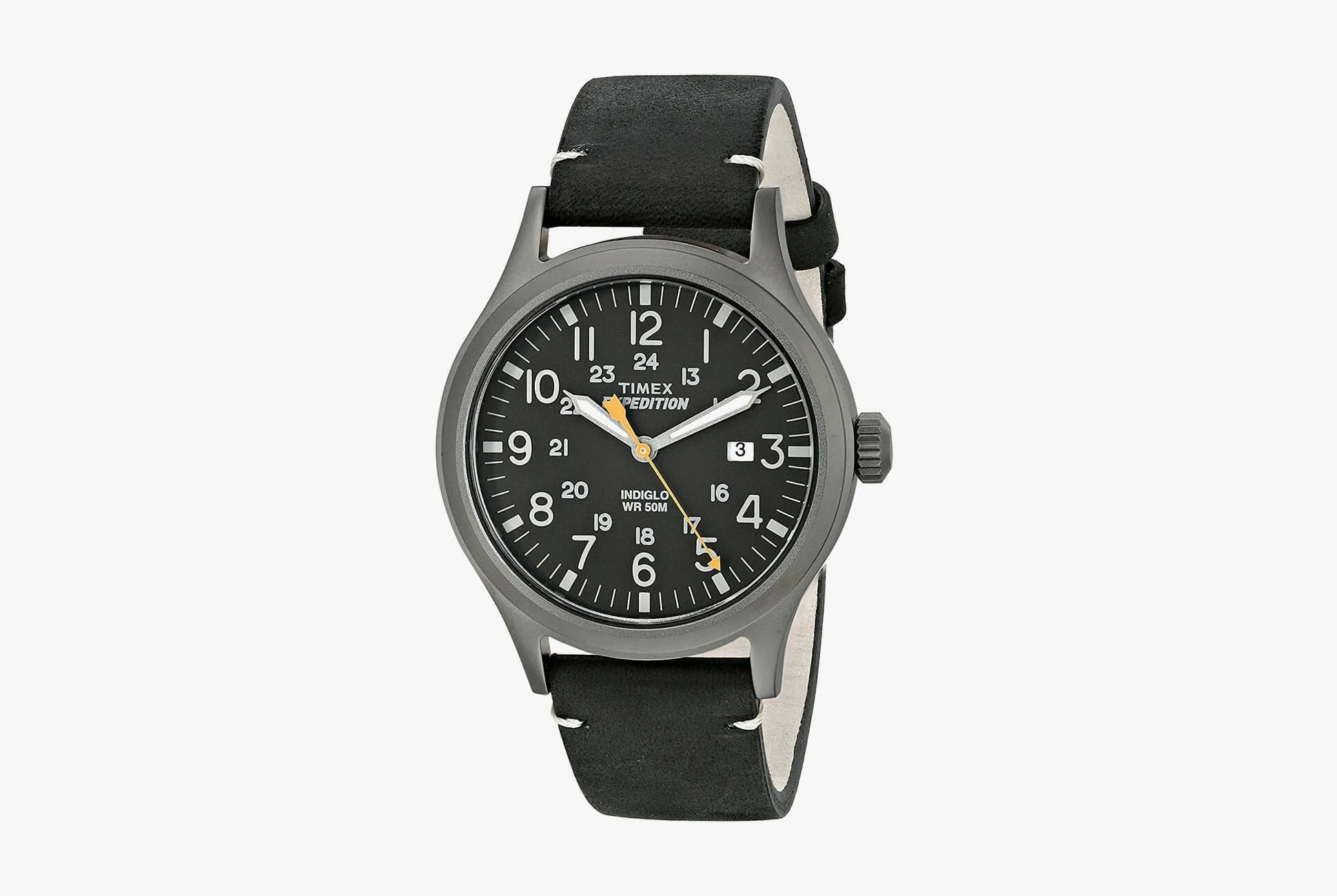 The Timex Expedition line has an affordable field watch for everyone, with numerous dial options and strap colors available. Right now you can nab one of several sleek Expedition Scout 40 watches on Amazon, each of which features a 40mm case, Indiglo backlight technology, quick-set date, 50m of water resistance and either a two-piece leather strap or a nylon NATO strap. If you’re willing to shell out a few more bucks, there are more dial and strap options available, as well.