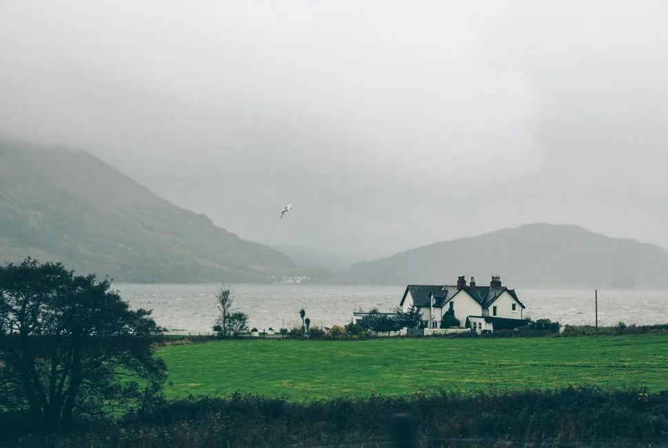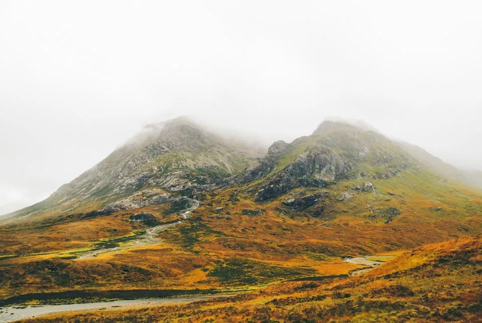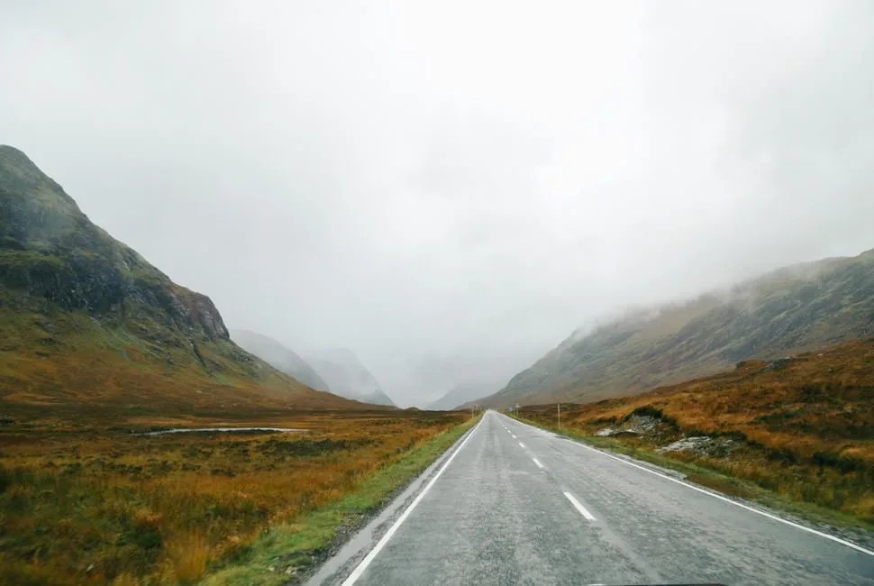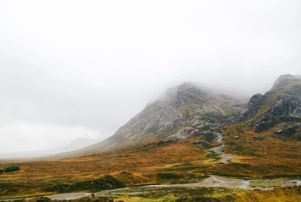 We drove north toward our next destination, the Isle of Skye. The country opened up and the road narrowed. I couldn’t feel where the car’s left-side wheels were in the road because I was seated on the right, and the switchbacks were tight and becoming more frequent; fortunately, traffic had thinned out. So had everything but the country, which was opening up wider and wider, the mountains taller and the glens deeper, the colors around us shifting from warm greens to striking shades of brown, yellow and grey. Low-hanging clouds rode up the sides of Munros and hid their bald peaks; winds from the west tried to gust us off the road; rainstorms volleyed against our windshield, ebbed, then pattered down again. But try as it might, the weather could never have hidden the raw beauty that seemed ready to swallow us up. The road meandered on. We followed it deeper into the heart of Scotland.