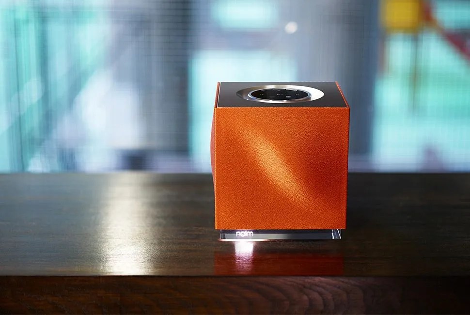 The music playing also isn’t limited to only one speaker. A Mu-so speaker can connect wirelessly to up to five other Mu-so speakers — including the new Mu-so Qb, a 300-watt compact cube speaker with the same high-powered tech that comes in the bigger Mu-so — all placed in different rooms of a home. Using an optional Naim app, the speakers can be controlled individually or en masse. You can play one song on every speaker simultaneously, or play different songs in different rooms, separately. As for looks, both the Mu-so and the Mu-so Qb are made of sleek, polished aluminum, and feature interchangeable fronts; black comes stock, but additional colors include blue, red and orange.