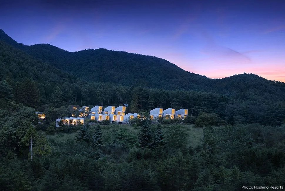 While the view is the main attraction of the hotel, it is not its central thesis. The thesis is “glamping,” which in this case the Japanese owners of Hoshino Resorts, the parent company and operator of more than 30 hotels, resorts and ryokan (traditional Japanese inns), have interpreted a bit differently than other arbiters of the glamping experience. It’s actually more like a camping-themed hotel, and in that respect it succeeds. Instead of tents and lanterns, the cement buildings house spartan, modern white rooms with plush beds, bathrooms with smart Toto toilets, Bang & Olufsen Bluetooth speakers, and elevated amenities like a Hario pour-over coffee setup and a refrigerator filled with colorful beer cans from Suiyoubi no Neko and Kiuchi breweries. There are also hooks on the wall for hanging the canvas backpack — packed with a Snow Peak headlamp, binoculars and blanket — issued on arrival.
