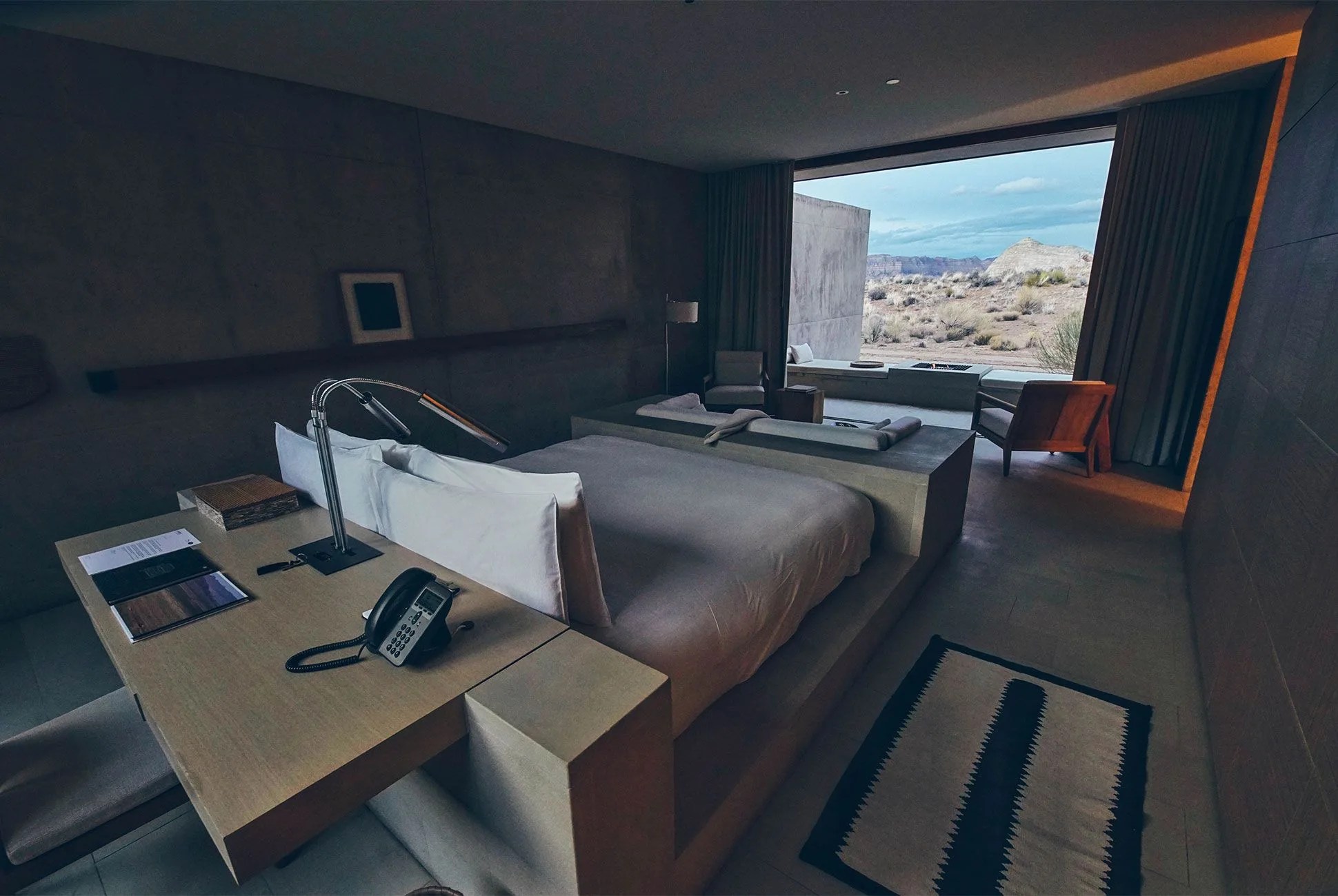 It’s been said that you can take any single frame of Lawrence of Arabia and hang it on your wall. The same rings true of the sightlines you’ll find at Amangiri — the secluded, exclusive retreat in Canyon Point, Utah. This is because this hotel is such a thoroughly executed masterpiece in siting. The boundaries between landscape and structure shift harmoniously. The grand scale of the interior spaces work with minimalist simplicity, rather than against it. And this all has an effect on you.
