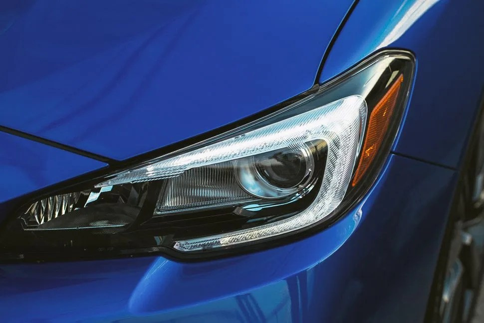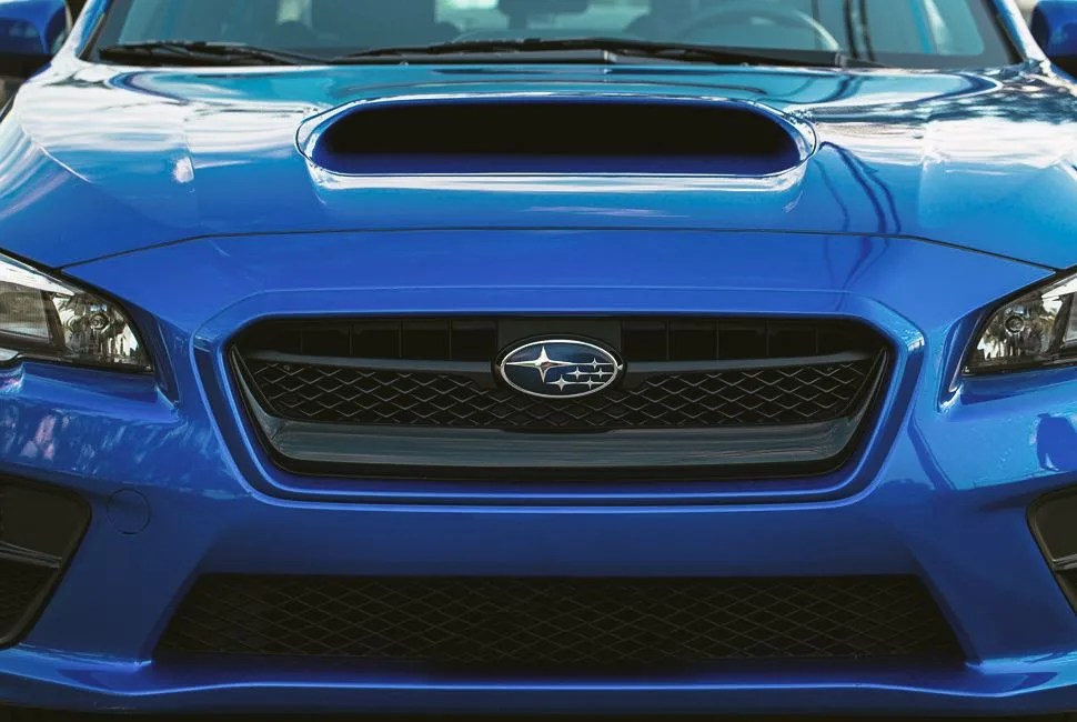 From twenty yards away our World Rally Blue Pearl 2015 WRX looks as taut as ever. Like a caged cat ready to pounce, the flared fenders and low, wide stance clearly advertise sporting intent. But follow its lines from hood to trunk and this Subaru’s silhouette is also sleek, measured and refined. There’s a teutonic air to this new WRX’s attractive package — the rear-quarter panel could just as easily have called a 3-Series home. Purists and hooligans may quibble that the WRX has lost its quirk, but this new design direction appeals to a much broader audience while still waving its rally flag proudly. The hallmark hood scoop remains, elegantly flanked by creases ripped from 2013’s WRX Concept car that stole our hearts at the New York Auto Show.