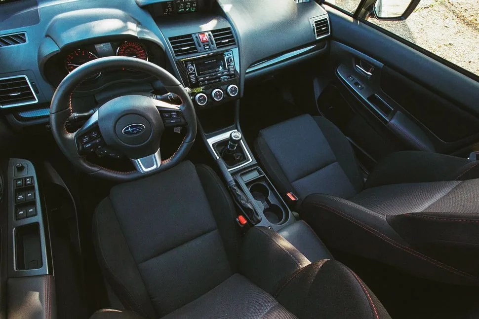 The improvements continue when you open the door. Unlike every version before it, this year’s WRX has surfaces here are malleable, soft, and pleasing to the touch. Climate controls on the center stack consist of three dials, backlit in red and wrapped in burled bezels that (were they not plastic) wouldn’t look out of place adorning a high-end dive watch. The AM/FM/CD/MP3/WMA audio system is all new as well and features SiriusXM capabilities so you can cue up the Siriusly Sinatra and don your Fedora to class up your hoonery.