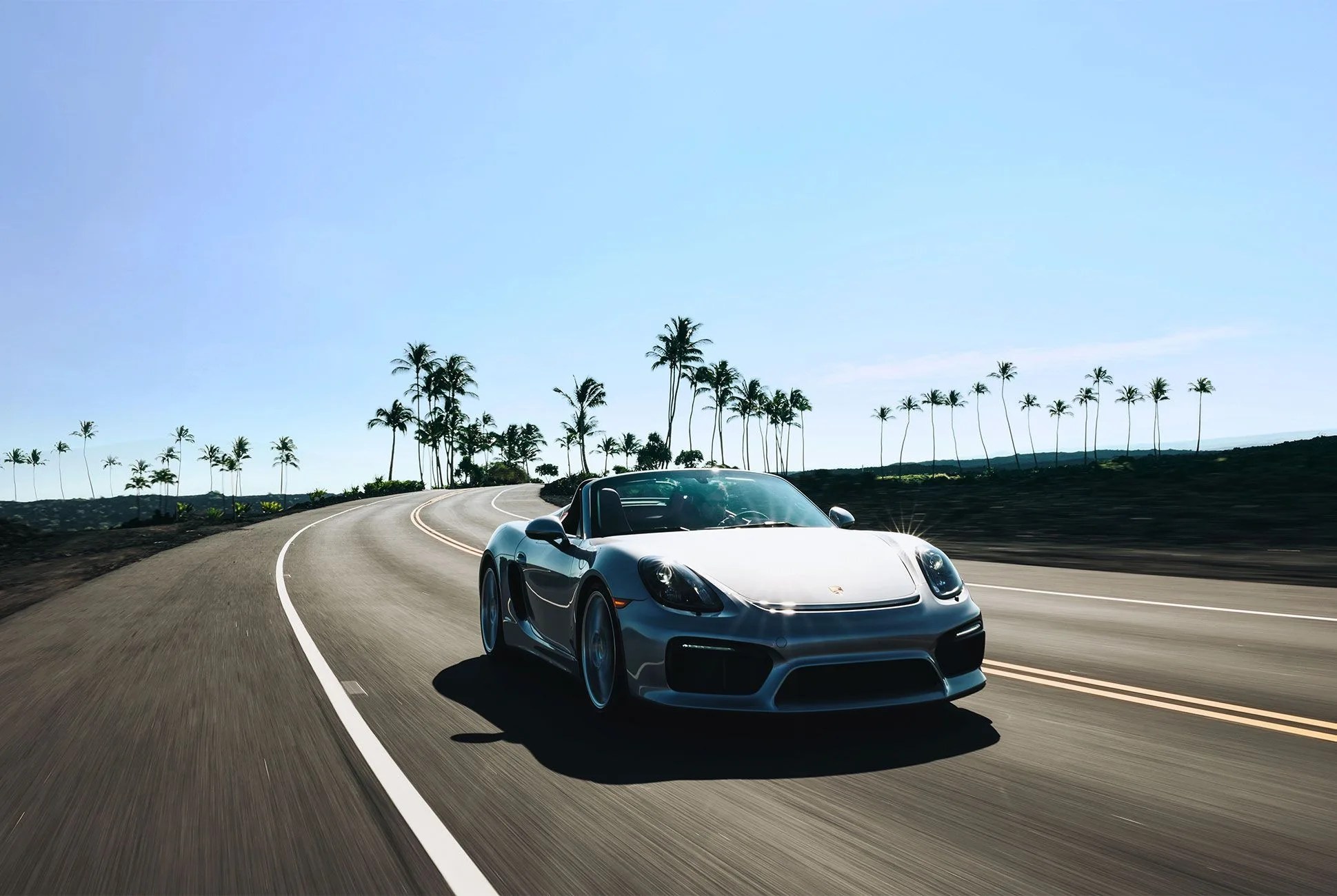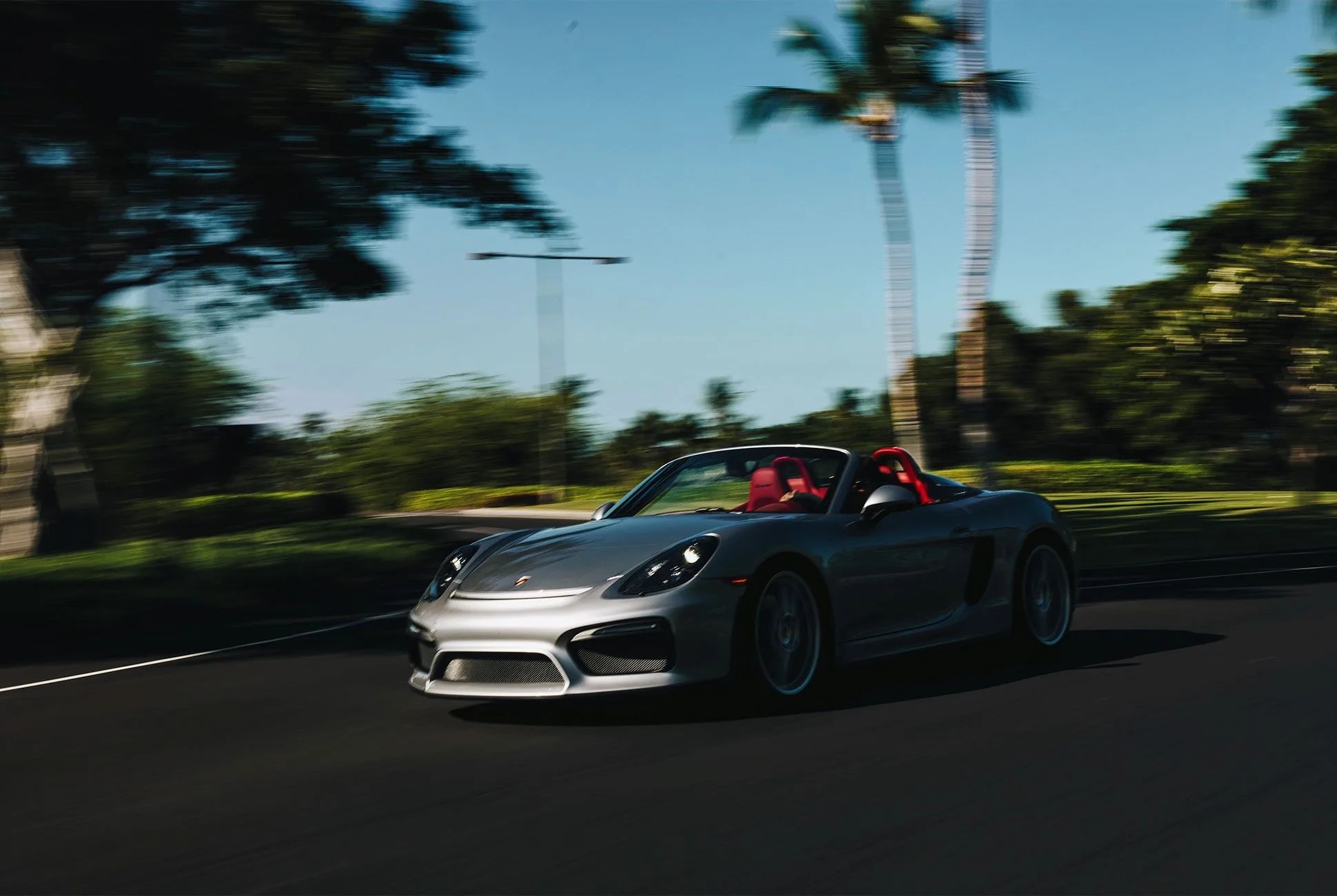 As I plunge toward the island’s southern perimeter I let out a laugh. A light shower has passed (the top is back down after a quick stop), and Hawaii’s dramatic sun again bears down. The road ahead, peppered with passing points, practically lends itself to spirited maneuvers. The Boxster Spyder is a full sensory experience: the snorting exhaust, the sensation of unprintable speeds, steering feel that borders on connective tissue and a suspension (about a half inch lower than your everyday Boxster) that firmly and quickly dispatches with any road defects. This is a 180-mph two-seat touring car.