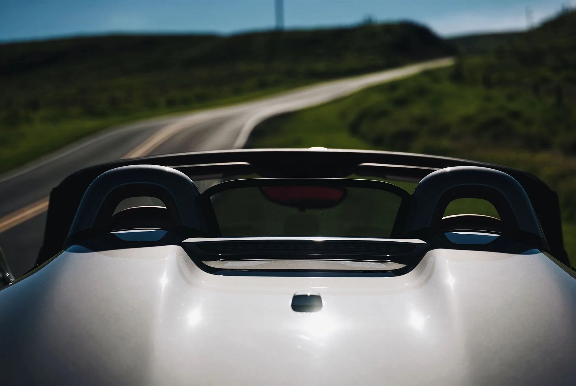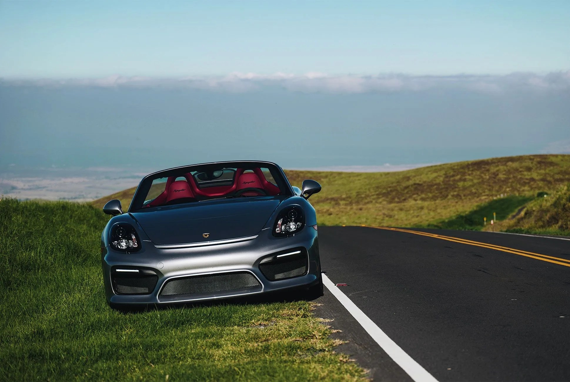 The Porsche Boxster Spyder, a spiritual successor to the mid-cen- tury 550 Spyder, isn’t a car that tidily fits into a spreadsheet or marketing plan, but here on Saddle Road all the German zeal makes complete sense. Once you’ve put the top down — a still confounding but somehow wonderfully manual process — and tapped yourself into Sport or Sport Plus mode, it only takes the momentary blur of time between the first light and the first curve for everything to coalesce. Its 375 horsepower and 309 lb-ft of torque are a perfect prescription of power. According to my given information, 0-60 takes 4.3 seconds, but numbers poorly convey just how the car achieves speed and inhales tarmac. It’s best described as a rushing mechanical yearn. Some cars devour roads, the Porsche Boxster Spyder aches for them.