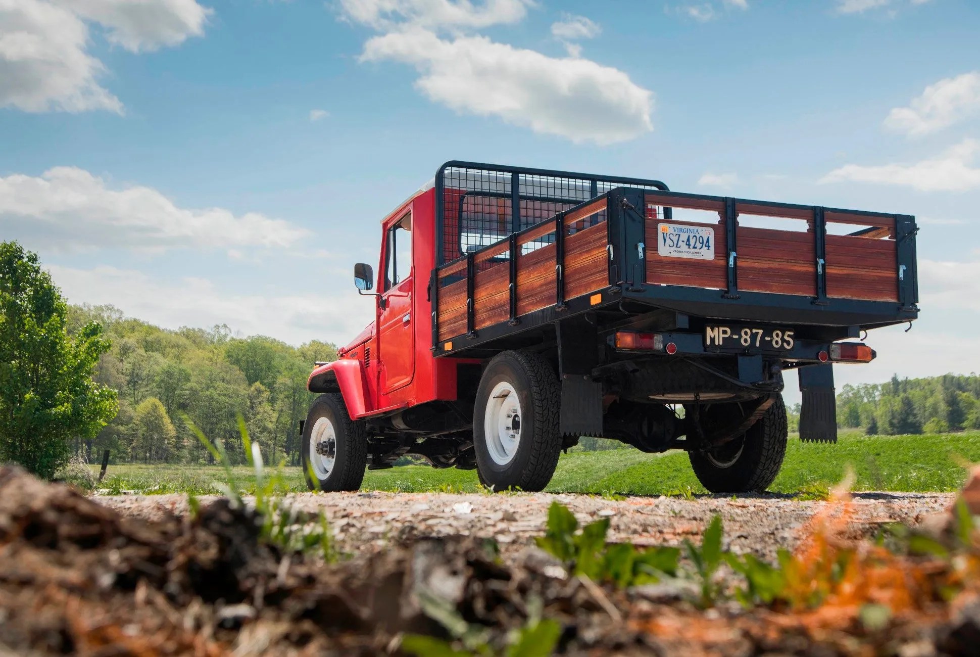 A remarkably low amount of miles have been put on this old pickup, and based solely on the wear and tear of the paint, interior and factory-installed wooden bed fencing, those 30,998 miles have been kind. Originally owned and maintained by the Marinha Fire Brigade of Praia da Marinha, Portugal, it was later sold to the chef at the famous restaurant Rei de Leitoes in Mealhada, Portugal. Since then this BJ45 pickup has made its way stateside, where it now lives.