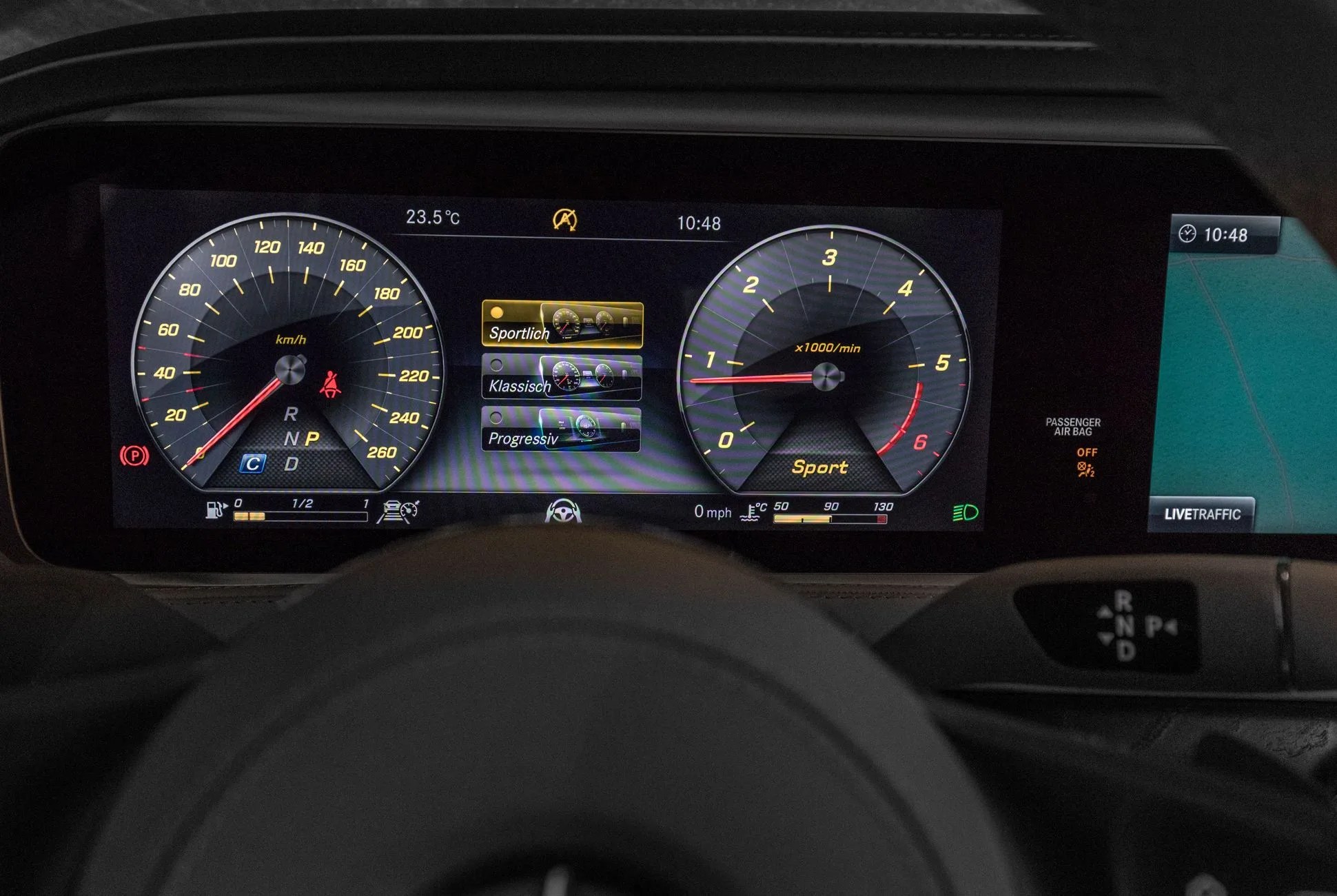 Inside, though, the highlights multiply. There are dual 12.3-inch high-res displays that blend together to form an expansive cockpit, touch-sensitive buttons on the new steering wheel and something called the Energizing Comfort Control. This combines seat massaging, automated fragrances, dynamic and colored ambient lighting, and music to enhance “wellness” while driving. There are six programs, including Freshness, Warmth, Vitality, Joy, Comfort and Training. All have their own ten-minute routines that include five separate music tracks synced up with the lighting and massage function. The Training program is great for perking up your muscles during long drives, while the rest — well, I did say this was a tech cocoon, didn’t I?