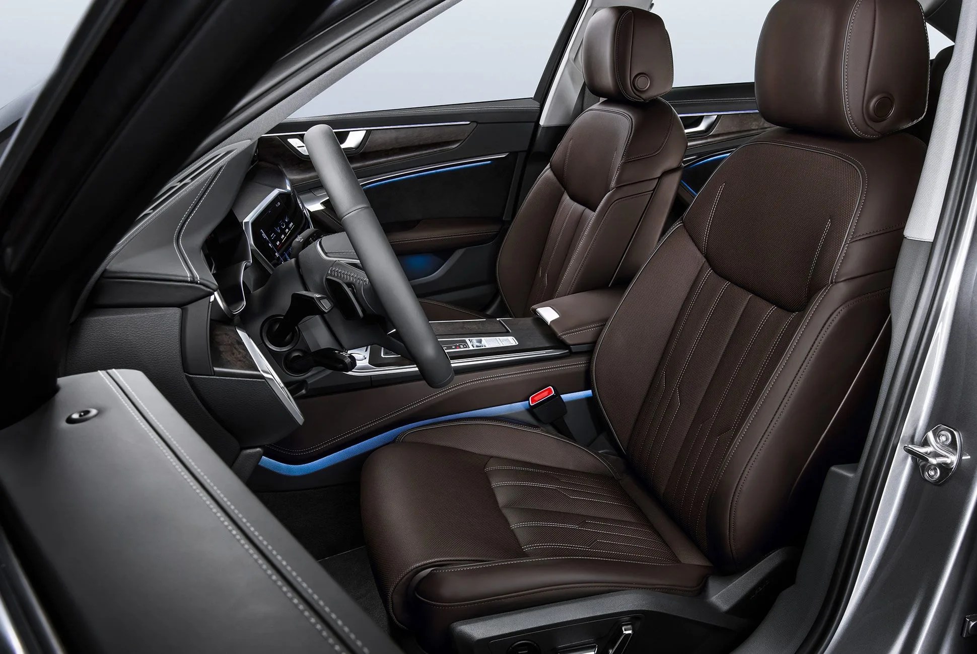 At launch, the A6 will come with a 3.0-liter turbocharged V6 engine, good for 340 horsepower and 369 lb-ft of torque. Similar to the A7, the A6 will utilize a semi-hybrid system, putting to work a 48-volt battery to help pull the car when coasting between 34 and 99 mph; the system also utilizes start-stop technology in traffic. Four different suspension options will be available as well, but the adaptive system is the one you want.
