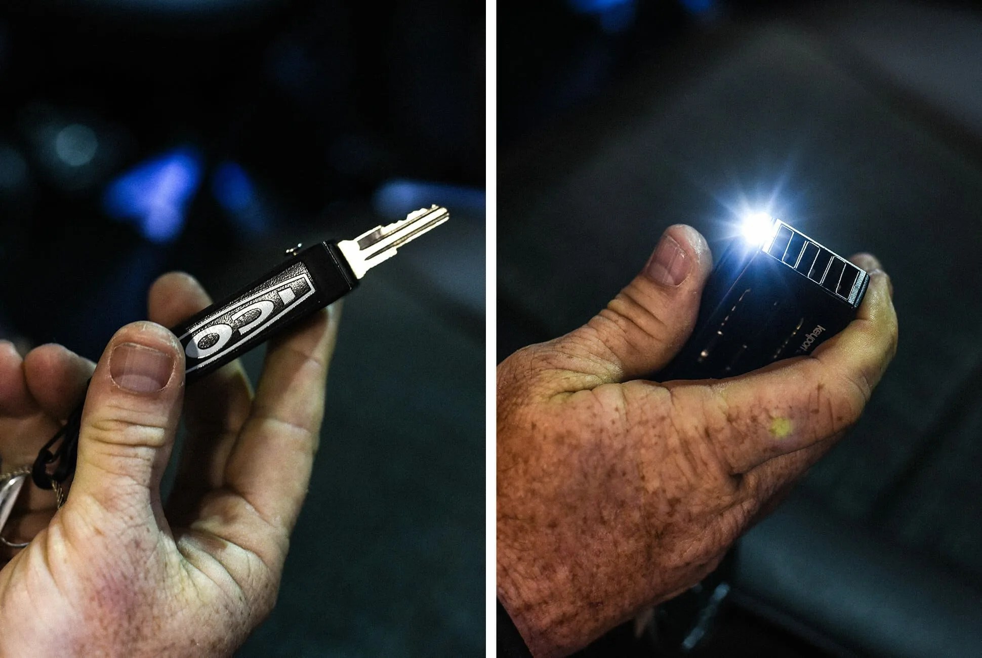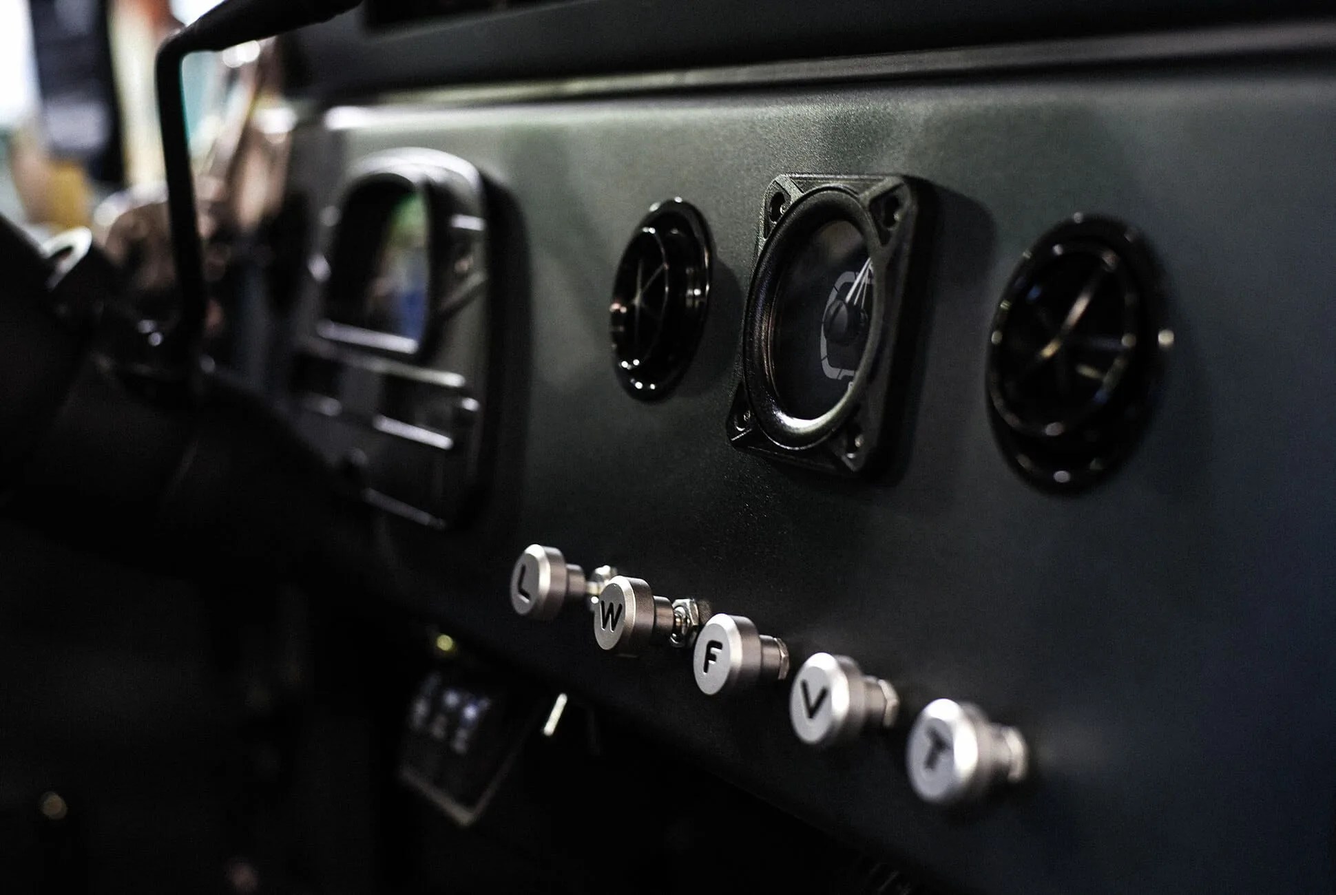 The rest of the interior is equally over-engineered. Ward expresses deep loathing of plastic, so he goes out of his way to make sure he can replace original plastic parts with metal: the air-conditioning vents, knobs, handles and switches — to name a few — are all CNC’d stainless steel. The console is also custom made my ICON, albeit begrudgingly. “The biggest US console maker is totally asleep at the wheel. I designed this and handed it to them and asked ‘Please can you make this? How about a double-DIN? How about gas shocks for the lid? How about stainless steel? How about, USB power ports and serviceable cup holders?” And they said ‘Well, no one else is complaining’ So that forced me into making our own.”