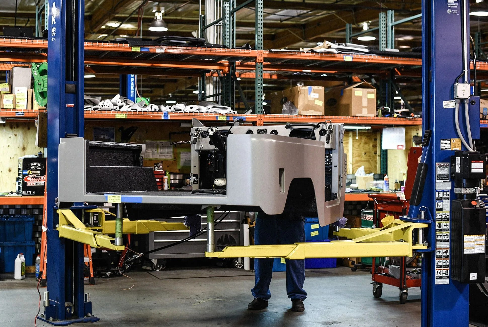 But what most people don’t always realize is the level of detail that goes into making the trucks absolutely perfect inside and out. Many shops will use whatever automotive parts are available but Ward wants his restorations to use the best materials possible, and he often has to go outside the automotive industry. The sun visors, for example, are made by a company that makes OEM parts for Learjet. The interior cargo netting isn’t automotive grade, but sports grade supplied by Nike — it’s more durable, according to Ward, and he uses it so it doesn’t look like “blown-out underwear” after a few years of use. The wooden beds of his Thriftmaster hot rods — some of which have Horween leather interiors — he likes to play around with, but the example he shows me uses carbon-dated, 5,000-year-old Irish bog-wood. “Fuckin’ nuts,” he exclaims. Fuckin’ nuts, indeed.