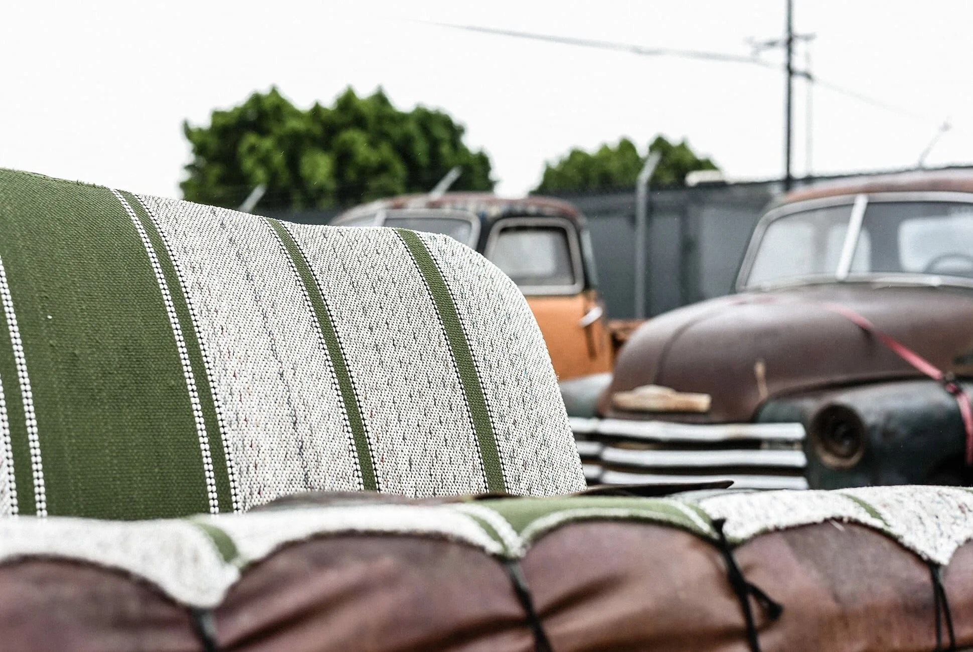 When Jonathan Ward opens the door of one of his FJ restorations, the first thing that catches my eye is a dongle hanging from the zipper holding the window closed. They’re little white and black balls, woven from a string of nylon, and they hail from a village in South America, Ward tells me, as part of a micro-loan program meant to create business opportunities in the region. Ward added them because he hates the clinking sound the zipper would otherwise make when the truck is in motion. As for the zippers themselves, Ward tells me “in my world, just trying to get zippers to a specific length and gauge… its fuckin’ impossible!”