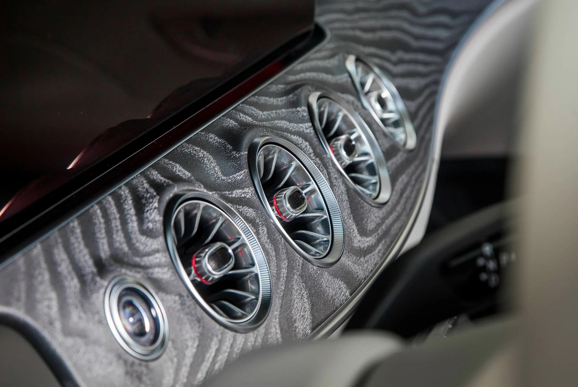 This new CLS also sheds some of the contours and lines that have been prolific in car design in recent years, opting for fewer edges and creases in a style dubbed “sensual purity” that is highlighted by pillar-less doors and narrow headlights. There’s been extra attention to the interior design, too, particularly in a market where sophisticated comfort is status quo for this segment. Mercedes knows it needs to differentiate itself, and it does so with, among other things, a flowing wood trim piece that stretches from door to door. It’s surrounded by turbine style air vents and every crease is crammed with fiber optics for ambient lighting. 64 color combinations are available, and the lights even change from “hot” or “cold” whenever the interior temperature is adjusted. It’s the first in many ways the CLS interacts with the passengers.