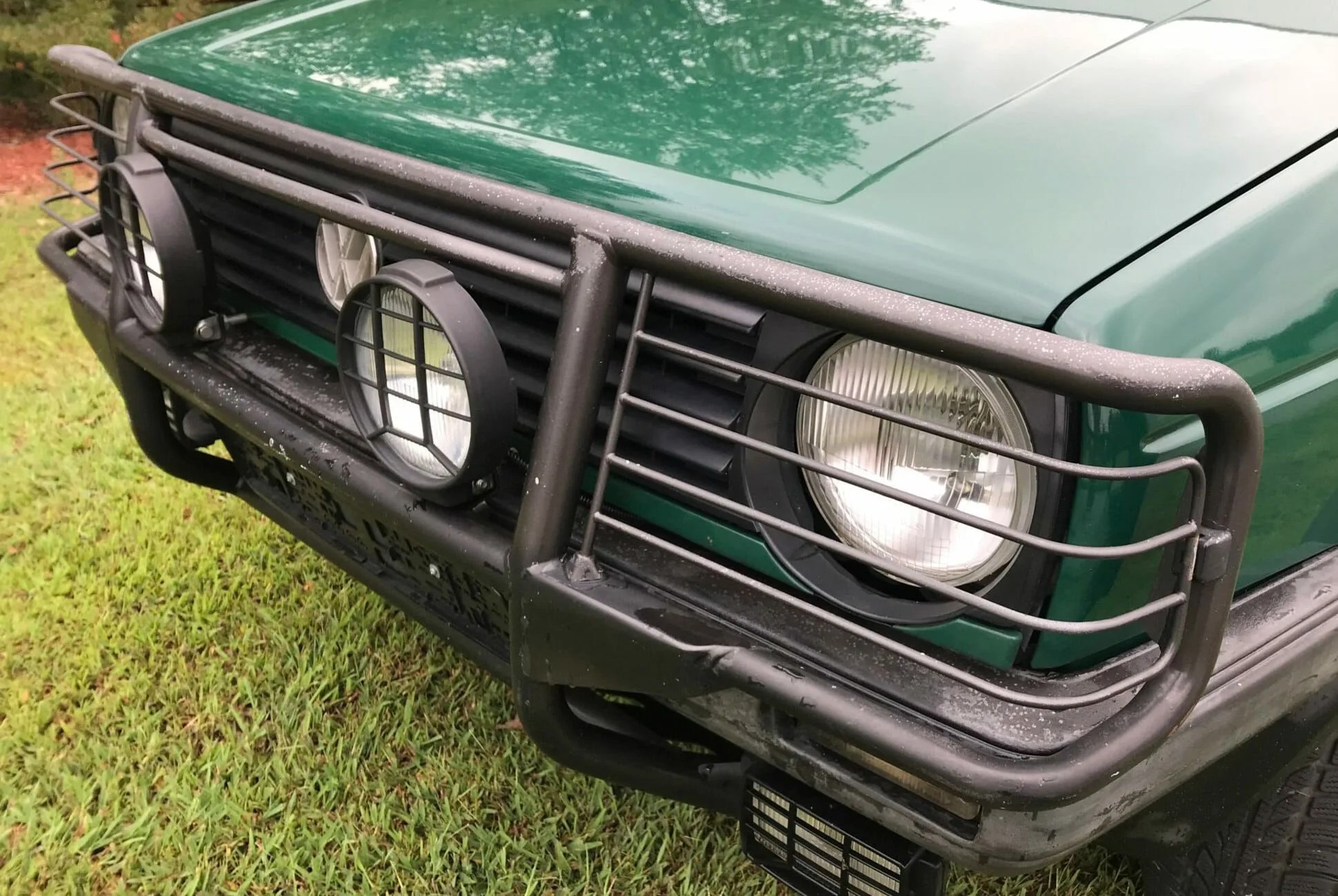 In some ways, you can think of the Golf Country as a proto-crossover, a vehicle offering the compact size of a hatchback car with the off-road chops of an SUV. It also looks like the automotive equivalent of a ’90s Patagonia Fleece, with its dark green paint, plaid seats and truly radical side-graphics. It came with a sizeable 8.3 inches of ground clearance, as well as Volkswagen’s “Synchro” all-wheel-drive system that normally operates in front-wheel-drive mode but sends as much as half the power to the rear wheels when it encounters slip. Other specs include a 1.8-liter inline-four engine and a five-speed manual transmission. Oh and that brush guard and those extra lights? Yeah, those are stock, too.