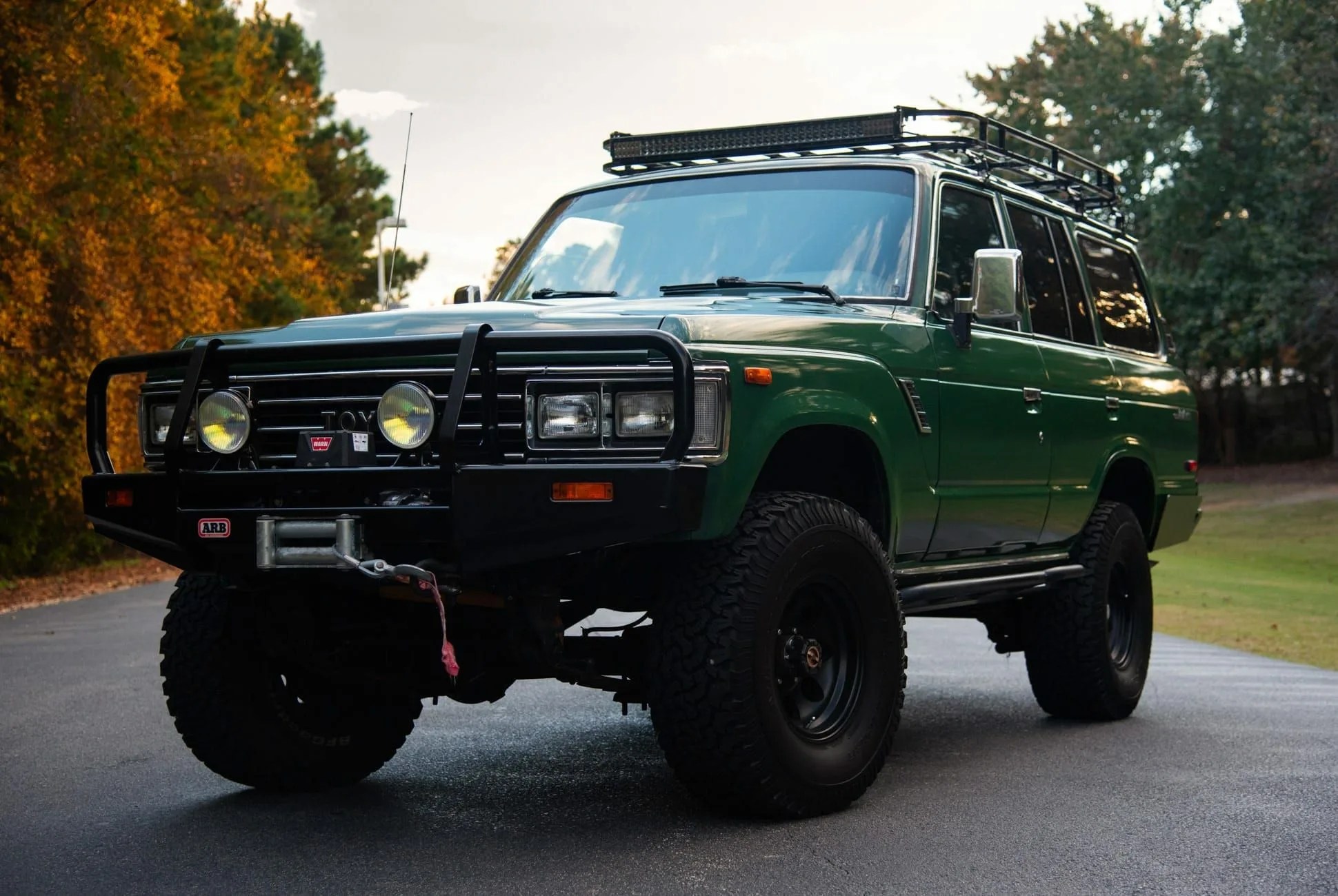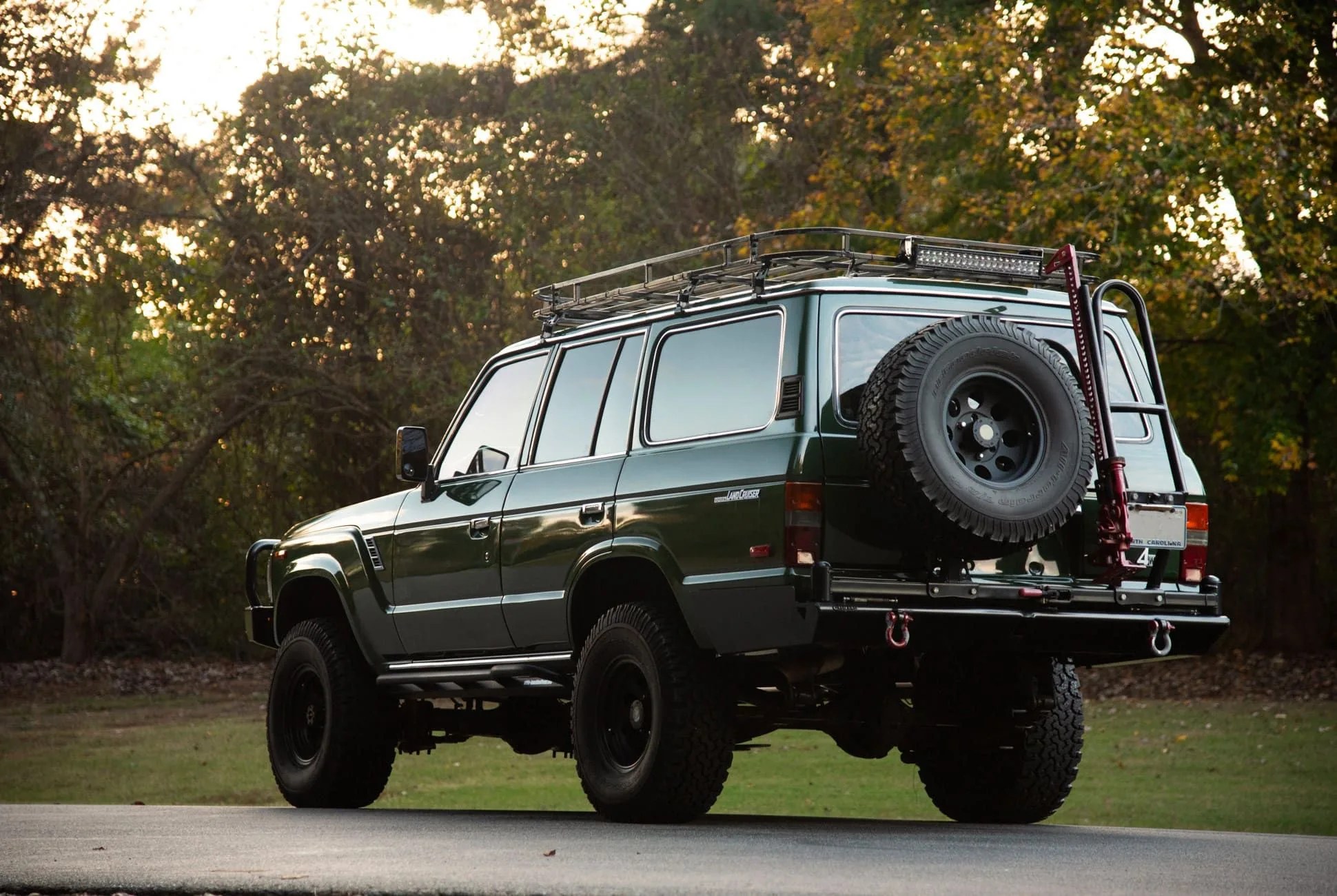 To go along with the new aftermarket paint, full fluid flush and service, this overlander comes equipped with all the bells and whistles you’d want on any overlander. The ARB front bumper, 9,000-lbs Warn winch, 4×4 Labs rear bumper, White Knuckle Off-Road sliders, a roof rack cage with front and rear Rigid LED bars and a high-lift jack are all in the ‘overlanding essentials‘ starter kit. It all sits on 33-inch BFGoodrich All-Terrain tires, too.