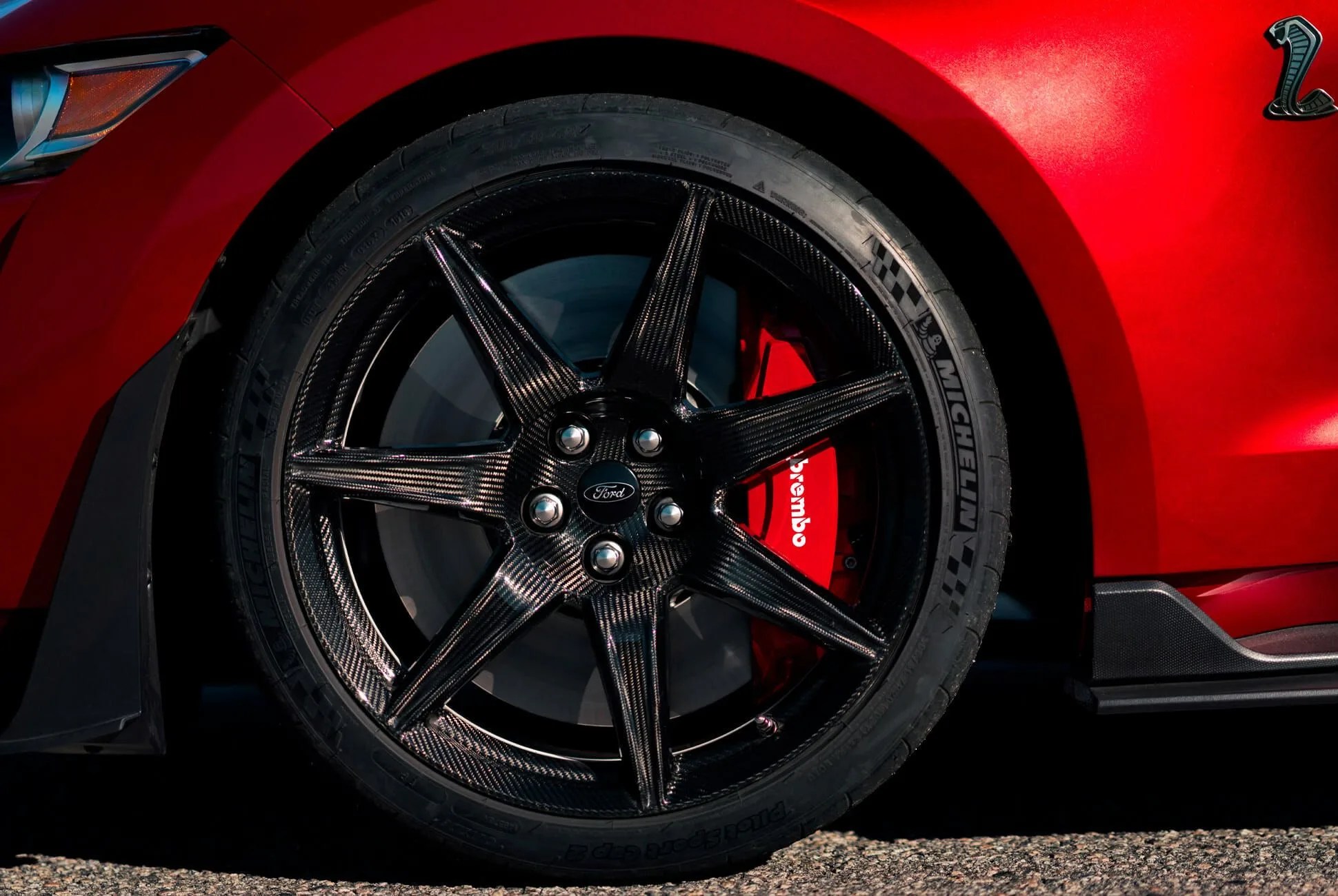 Other sporty as all heck details include a carbon fiber driveshaft, a carbon fiber track wing, Brembo brakes, carbon fiber wheels and a four-setting – normal, quiet, sport, track – fully-active exhaust system. In case you were unaware you were buying the hottest factory made Mustang, it will be available in colors such as “Red Hot” and “Twister Orange” to emphasize that point.
