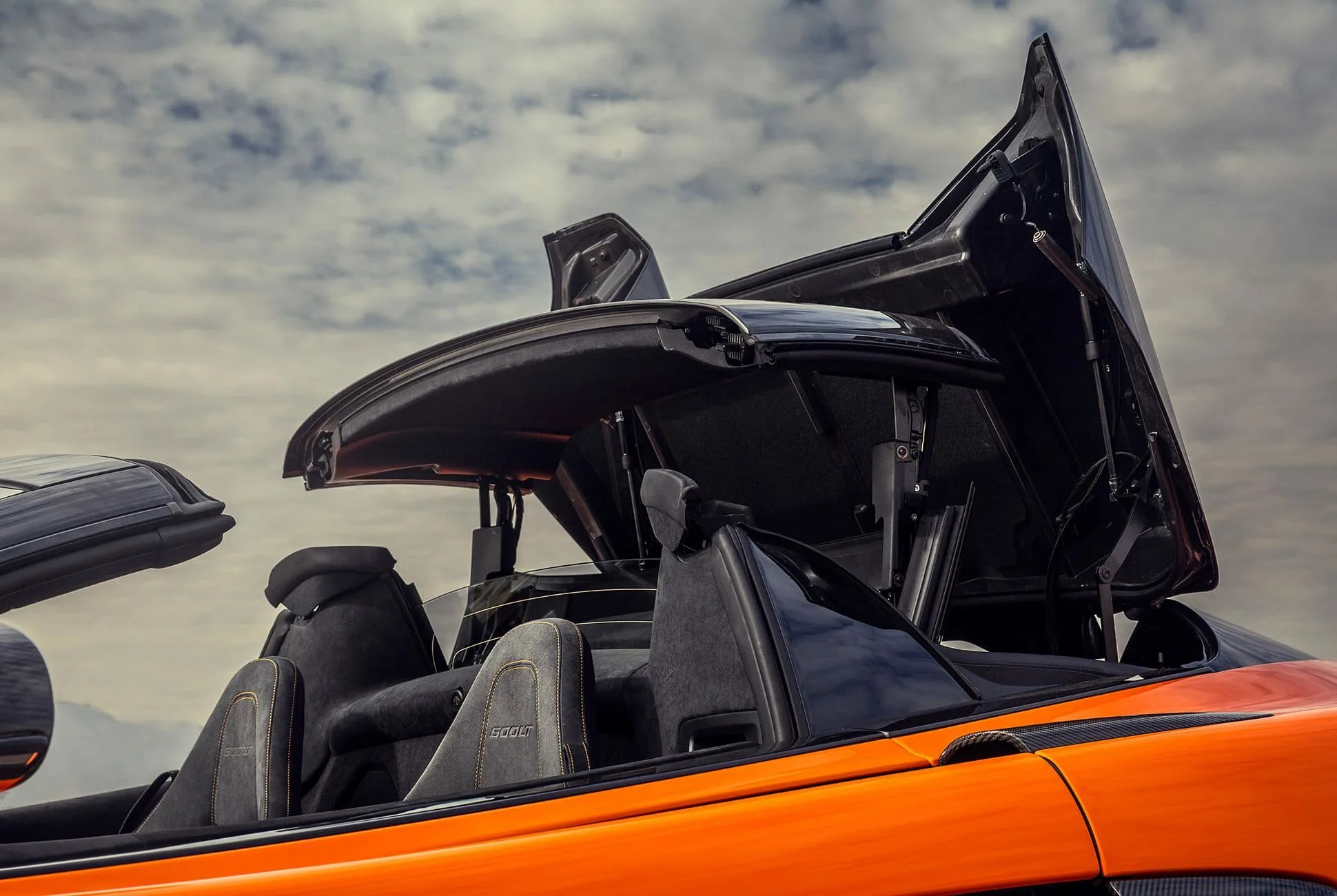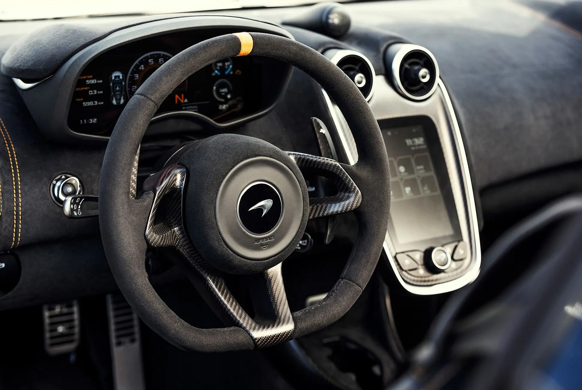 Here’s a fun bar fact that’ll make you sound very smarts: in the 1997 Formula 1 season, a photographer spotted a second brake pedal in the McLaren MP4/12 race car. It emerged that pedal was for brake-steer and, when engaged by the driver, it clamped down on the inside rear wheel during a turn to offset understeer. It was outlawed by F1 officials at the end of that season, but it’s back in the 600LT and the Spider. What that brake vectoring does is help the car absolutely tear through corners at high speeds. A little trail braking into a turn, and the front end tucks in, grabs hold of the line and stays there until you unwind the wheel again.