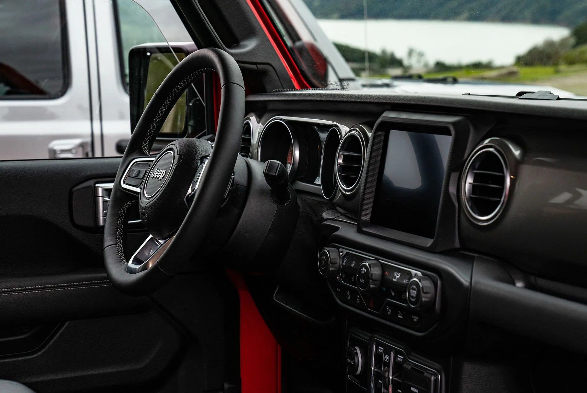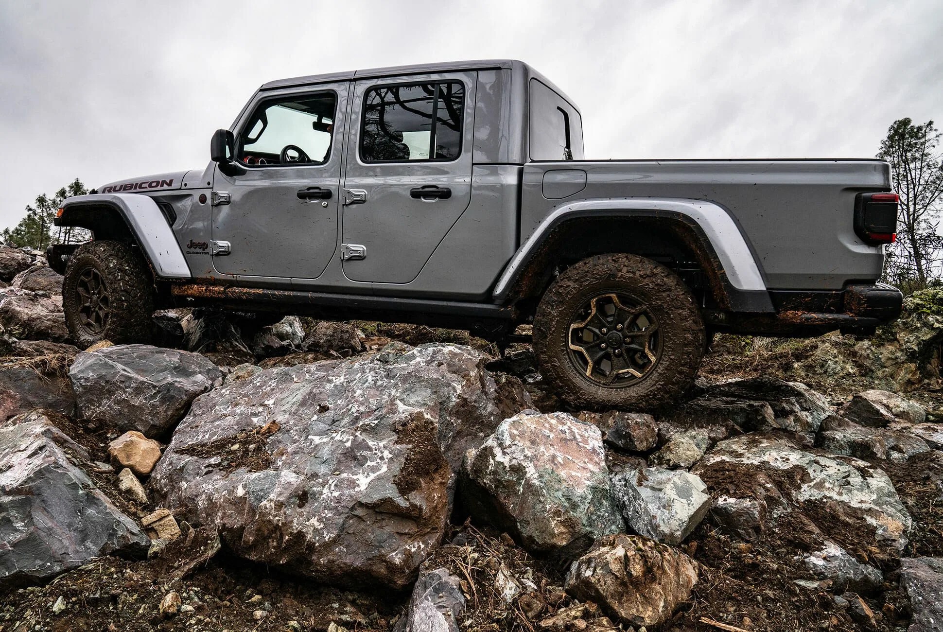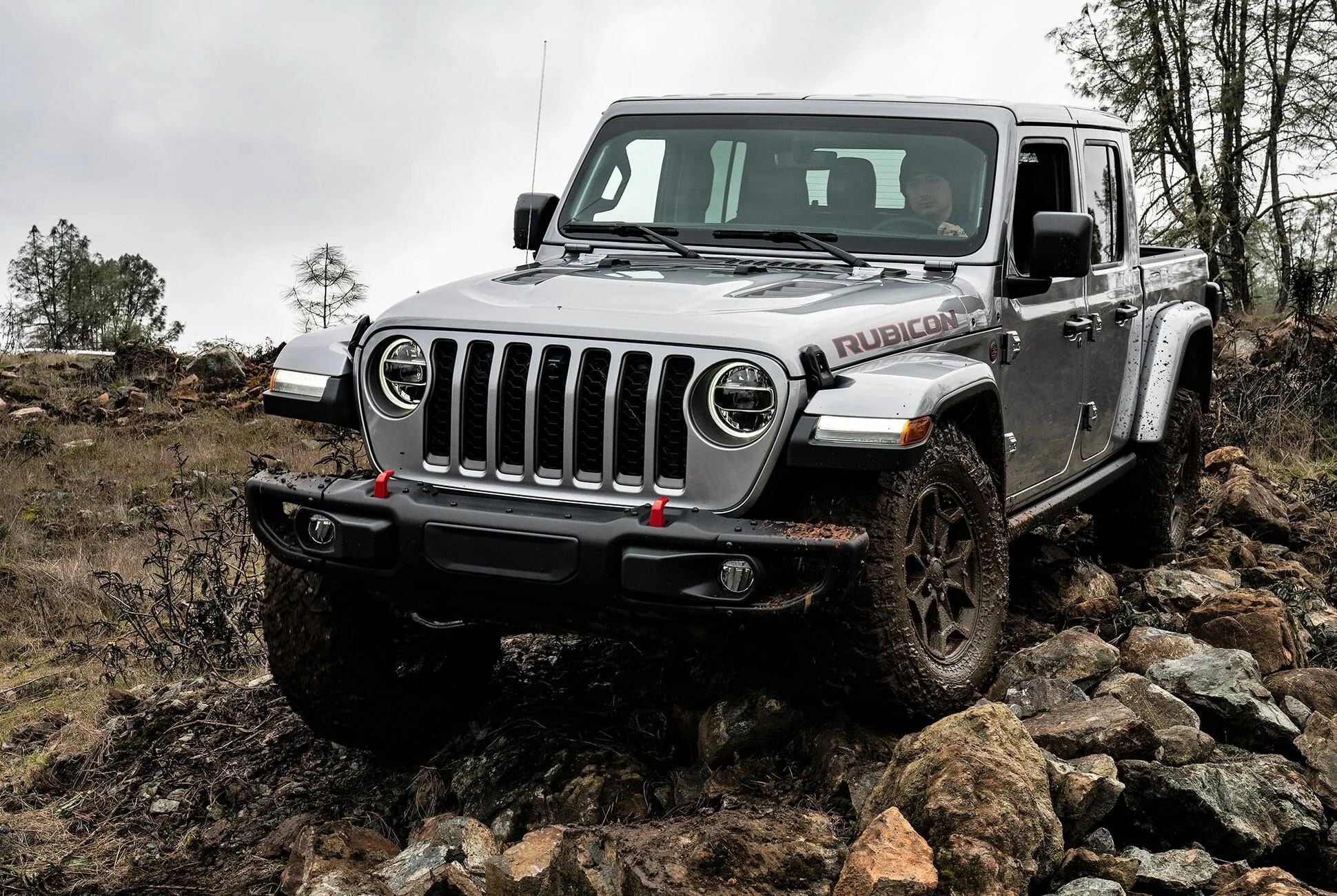 Review: Gladiator revives a fabled nameplate used in a Wagoneer-based pickup between 1963 and 1972. But while, as a Jeep, it’s obligated to live up to its heritage, more important is the truck’s appeal to modern users. In that sense, the Gladiator delivers, both in modern metrics like connectivity and baseline comfort and the nuances that make Jeeps, Jeeps. Out of the gate, it comes powered by a 3.6-liter Pentastar V6 that delivers 285 horsepower and 260 lb.-ft. of torque. (A diesel V6 will arrive next year.) Those numbers might feel low by current truck standards, but they more than deliver at the midsize level, particularly given that the powertrain is optimized for low-end torque and slow-and-steady rock crawling. To help fuel economy, it features engine stop-start and a smooth eight-speed transmission. The manual six-speed option, though, is a joy to drive, especially with gear ratios that allow for stress-free low-speed maneuvering without the constant threat of stalling.