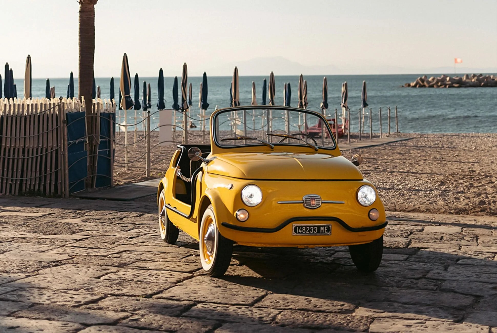 Hertz Italy’s Selezione Italia collection lets customers rent Italian-made (from Fiat Chrysler brands) vehicles in Italy. As part of that collection, Hertz is partnering with Milan-based custom automaker Garage Italia to offer awesome bespoke Fiat 500 Jolly “Spiaggina” Icon-e cars for rent.
