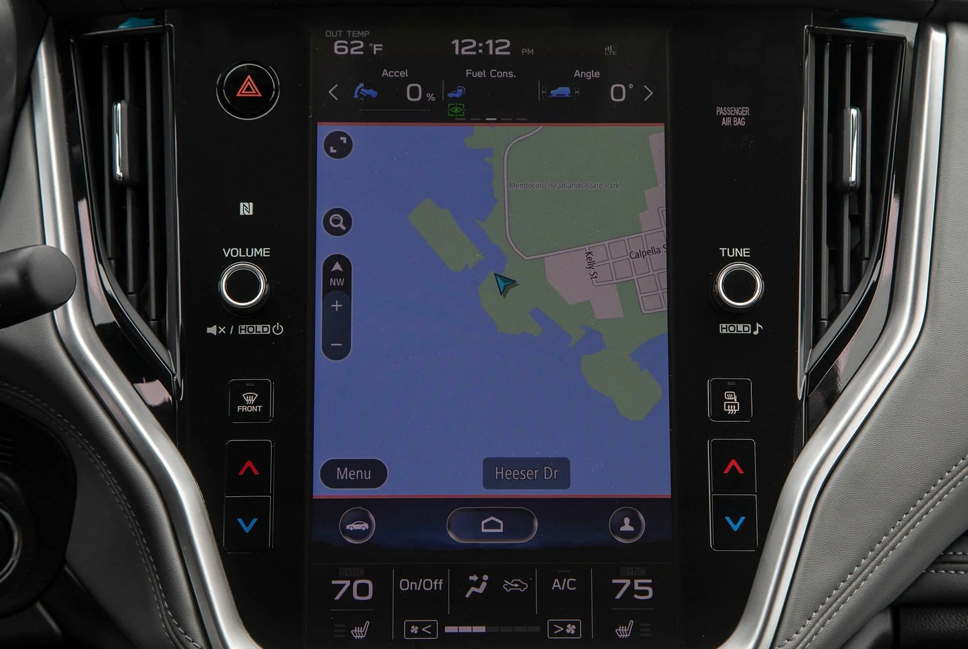 The Good: As a non-fan of the continuously variable transmission (CVT) — the kind that dispenses with gears in favor of a sliding range of ratios — I found myself surprised by how much I didn’t notice this one. That’s a good thing. CVTs are typically limp and high-revving, but Subaru’s new Lineartronic mimics an eight-speed gearbox nicely. Also, the car’s optional vertical infotainment display is a nice bit of modernization, while the Onyx XT trim delivers a cool and distinctive visual look, as well as a full-sized spare tire at enthusiasts’ request (lest they bust a tire on the trail and have to limp out on a donut).
