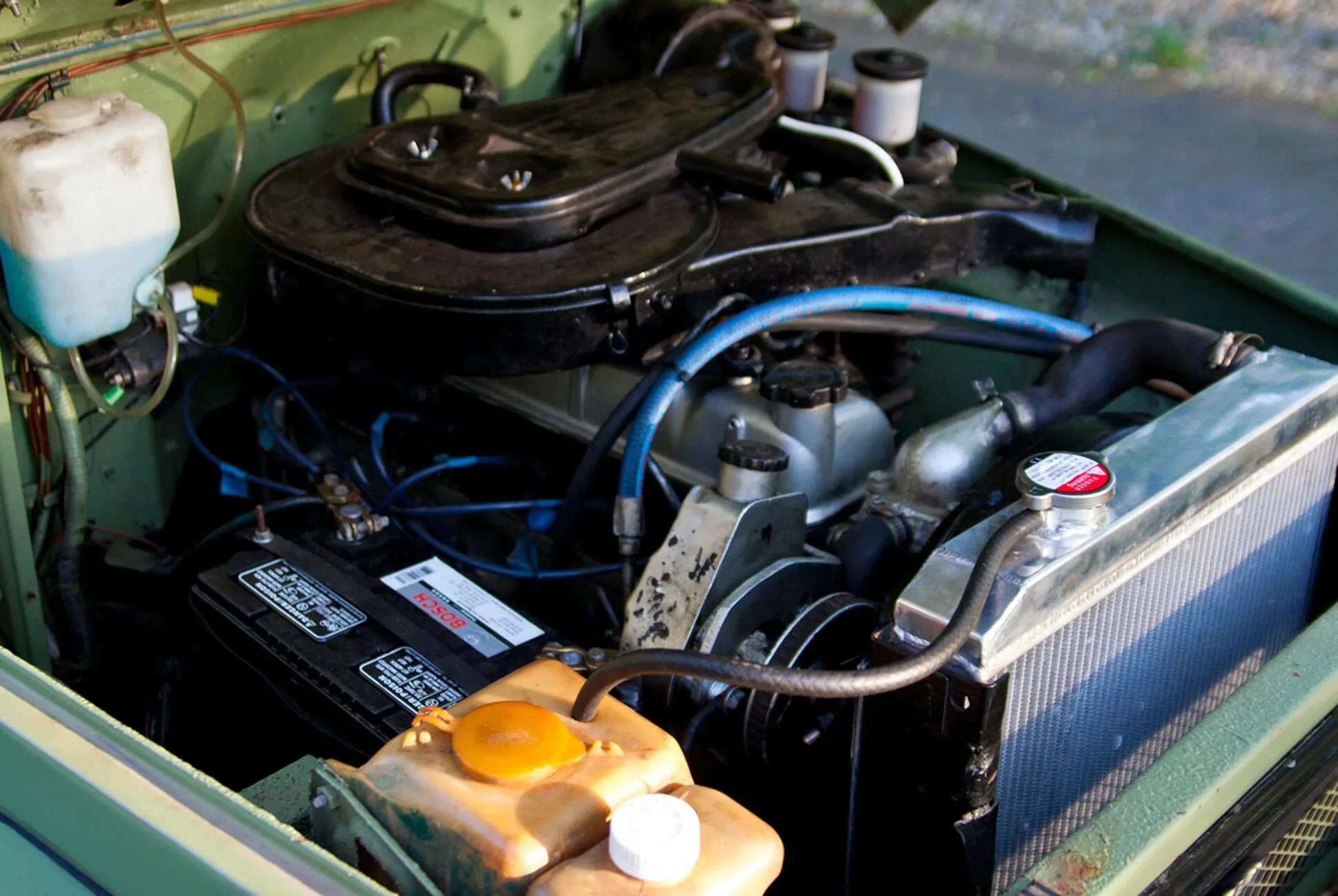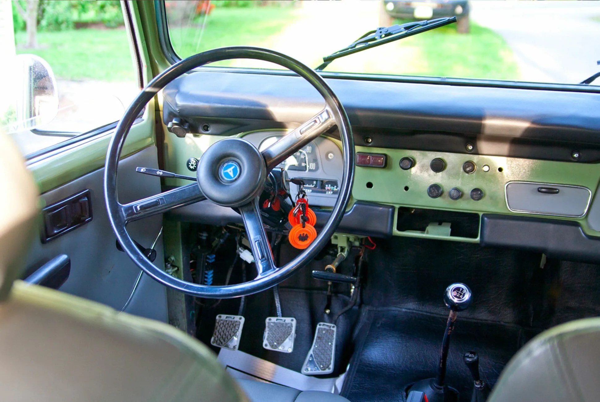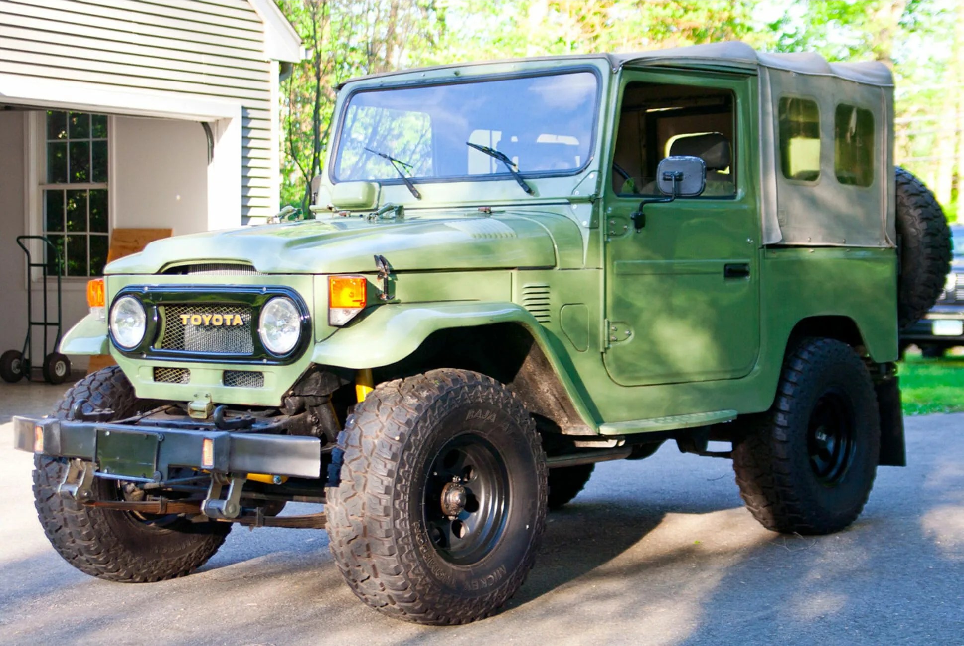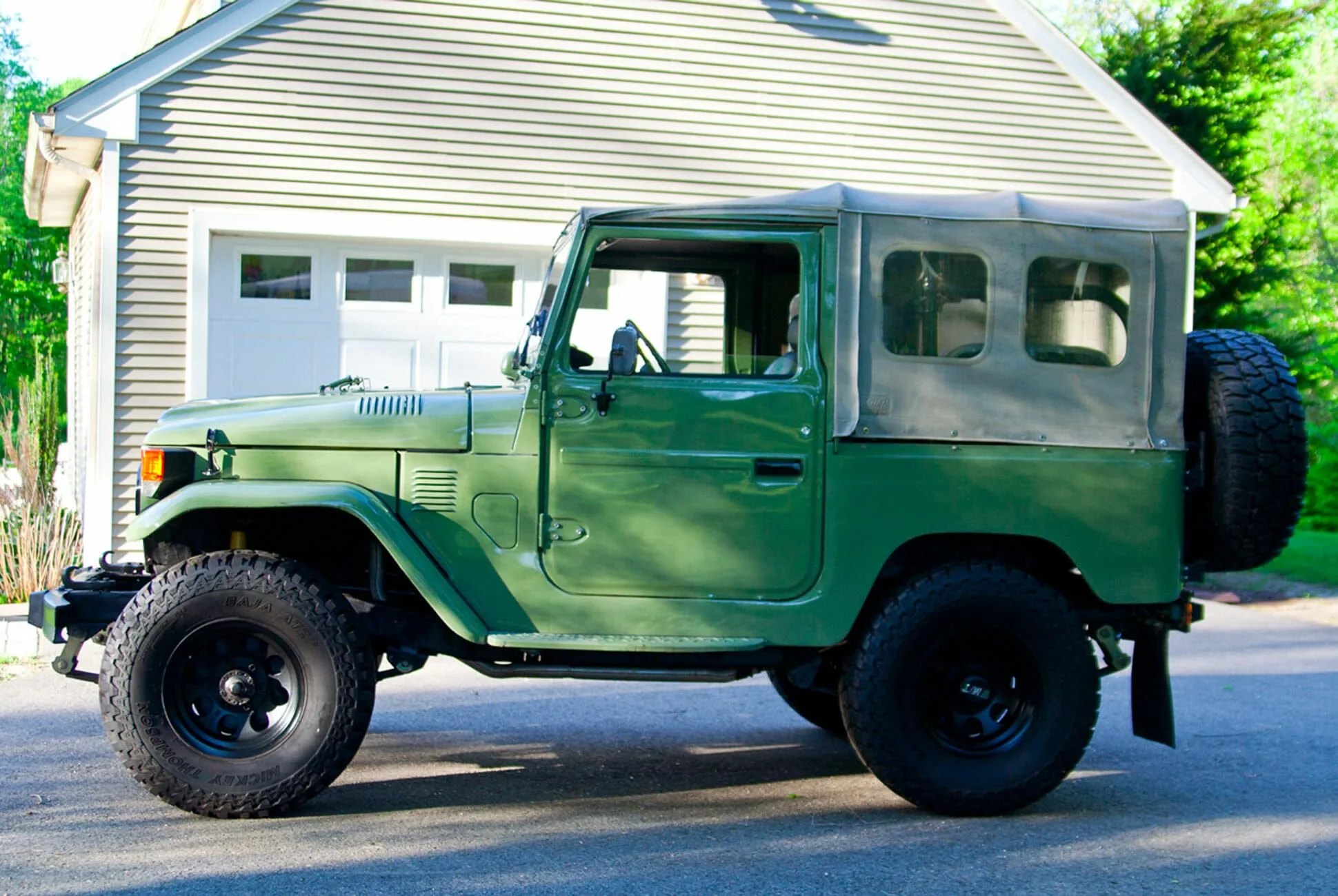 This particular one has the factory 4.2-liter straight six mated to a four-speed manual gearbox, topped off with a two-speed four-wheel-drive transfer case. A number of repairs and maintenance has been done, including a new head gasket and main oil pan and rebuilt alternator; the carbs have also cleaned. The soft vinyl roof was replaced with a Toyota-branded aftermarket soft top. And in addition to a fresh coat of paint, a previous owner graciously refinished the frame as well.