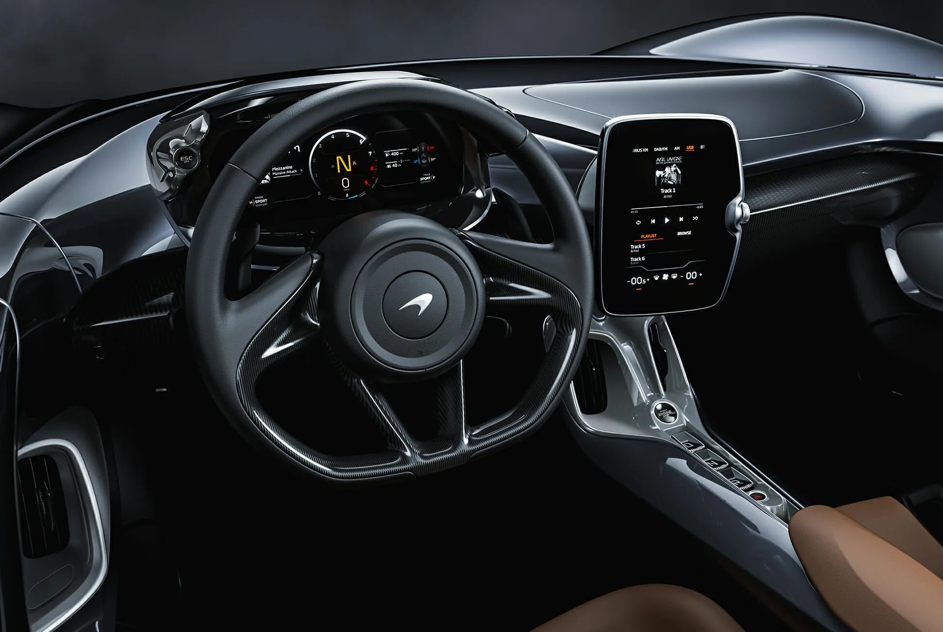 To get around the lack of windshield, McLaren came up with a way to use the blowing breeze against itself to shield occupants. The new Active Air Management System, or AAMS, uses the magic of physics to suck onrushing air down into the clamshell nose and then shoot it up and over the passenger compartment at high speed, checking the other oncoming air molecules out of the way. The effect, in theory, should be something like an air-blocking force field; we’ll have to see how it holds up in practice. (Yes, that’s our way of asking McLaren to let us drive it.)