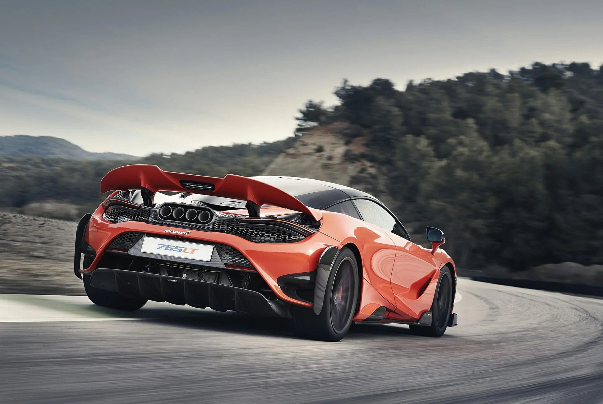 At first blush, you might mistake the 765LT for its (slightly) lesser sibling — at least from the front and side, which look much the same, albeit with a bigger, exaggerated front splitter. Look to the tail, though, and you’ll see some major differences. Chief among them are the high-mounted quad tailpipes jutting from the center of the tail; a new diffuser helps channel the air beneath the car, while new vents behind the wheels help it stand out even more.The rear spoiler has been moved 2.4 inches higher, to provide added downforce even when stowed.