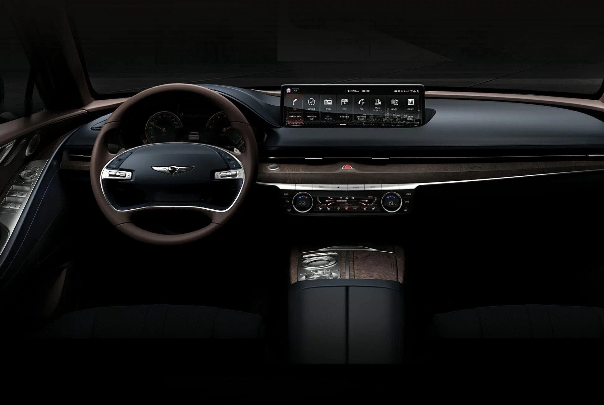 The G80’s new appearance will look familiar to those who saw the fetching GV80 SUV that Genesis featured in its Super Bowl ad with John Legend and Chrissy Teigen. The two cars share both a grille and the two-line lighting detailing on the outside. The same goes inside, with the super-wide 14.5-inch touchscreen and dashboard-spanning climate control vent.