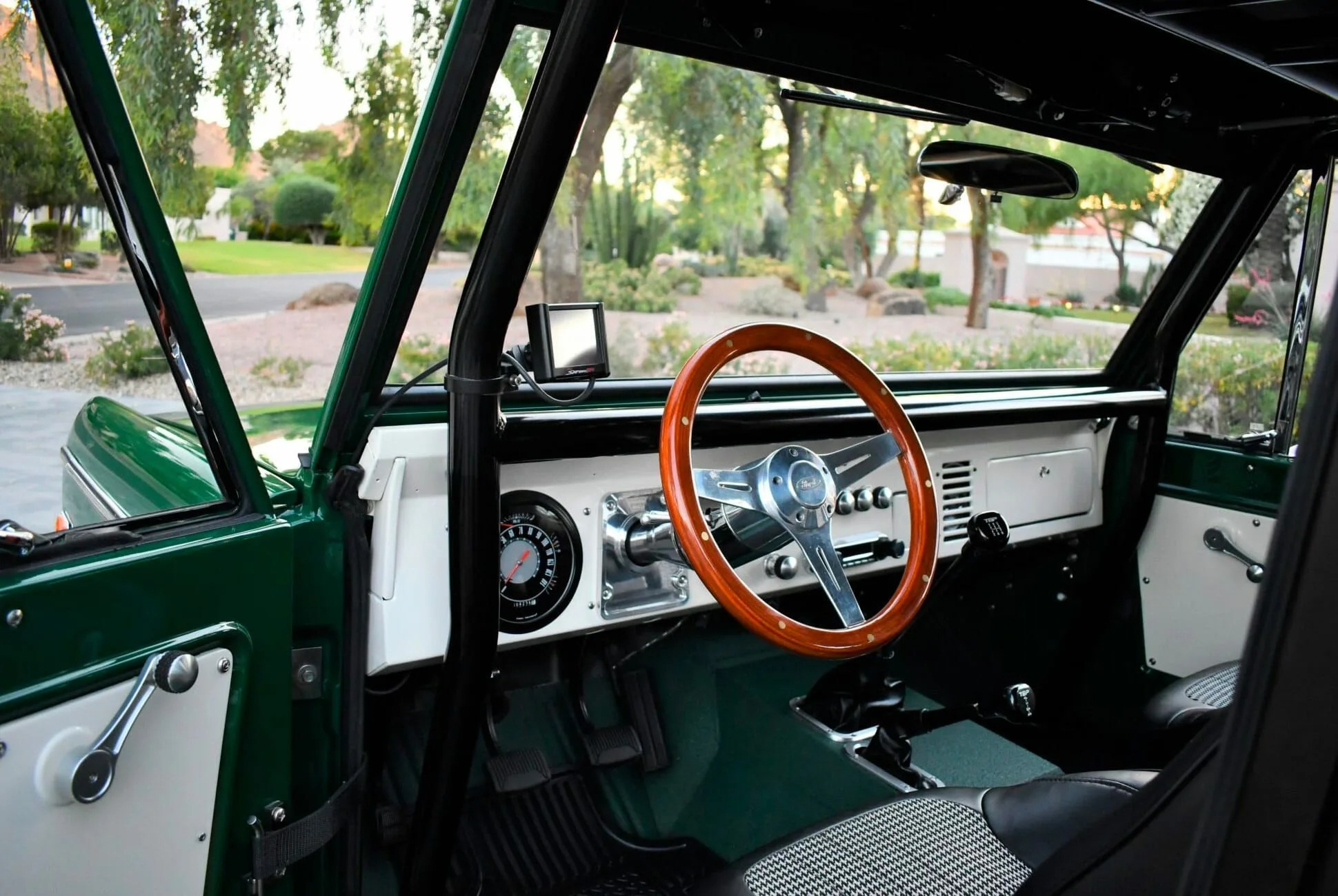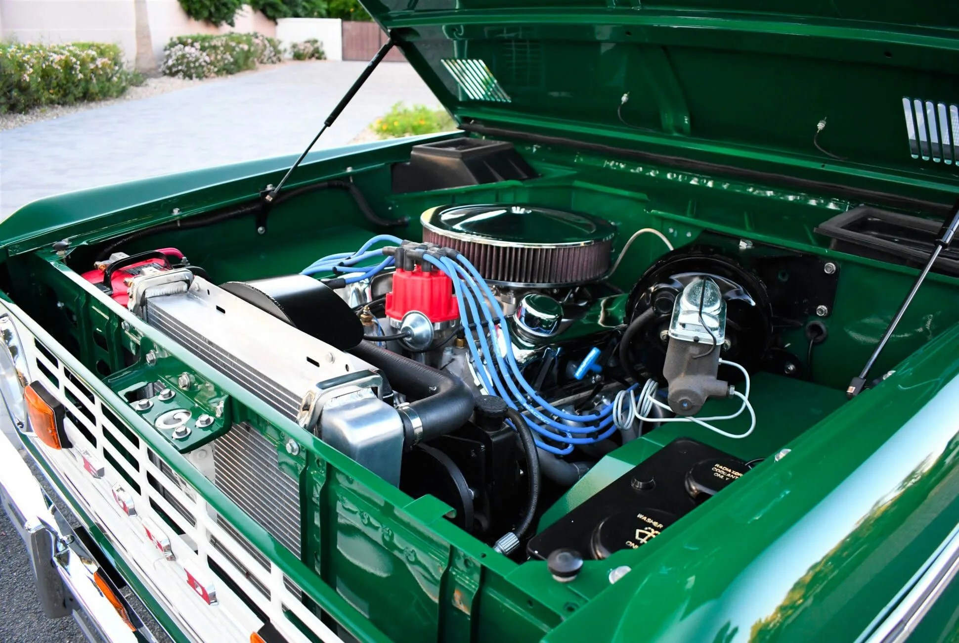 The Bronco is a custom rebuild by Illinois-based Maxlider Brothers Customs. The seller says it was a custom project and not one of their package builds. The Bronco has a 347ci V8 Stroker crate engine from Blueprint Engines, which puts out 415 hp and 415 lb-ft of torque. That engine is paired with a five-speed manual transmission. The new powertrain has about 4,000 miles on it since the build.