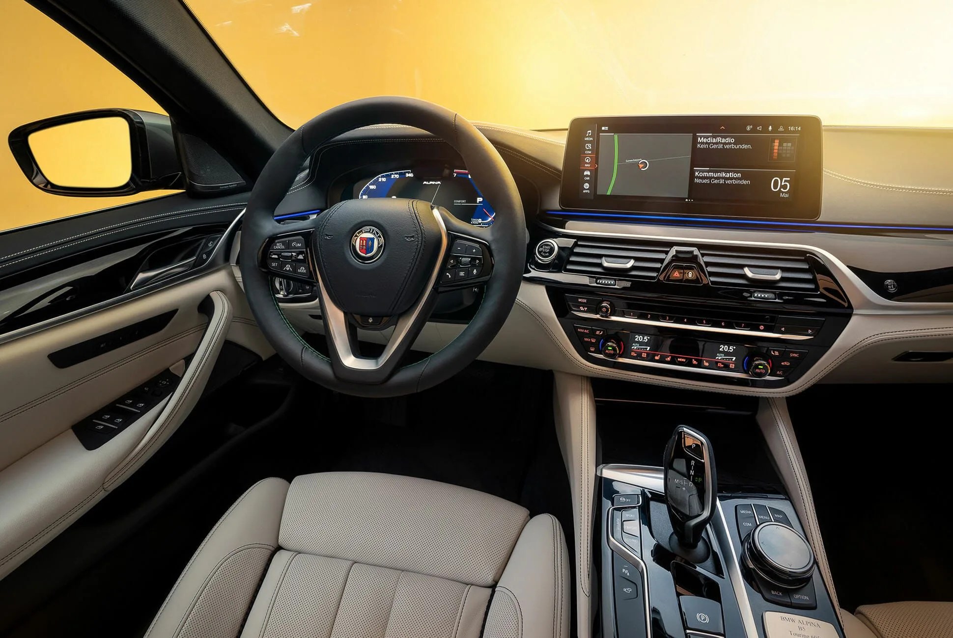 The B5’s twin-turbocharged 4.4-liter V8 puts out 613 horsepower and 590 lb-ft of torque, routed through an eight-speed automatic. It can accelerate from 0-60 mph in 3.4 seconds as a sedan or 3.6 seconds as a wagon. (Blame, we assume, the difference in weight.) For comparison, the M5 Competition produces 617 hp and 553 lb-ft and does the 0-60 mph run in 3.1 seconds. While that might make it seem like the two would cover the same niche, Alpina models are generally a little more relaxed than BMW M cars; to use a rough analogy, the B5 is a Gulfstream, the M5 is a T-38.