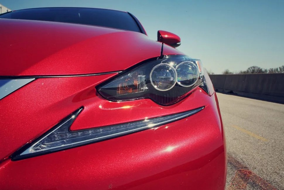 More aggressive than its predecessors in every way, the 2014 IS has mostly dropped its bland Toyota design cues for sexier sheet metal and interior styling, much of it à la the otherworldly LFA supercar. (Pricing for the new IS will be similar to current-gen models, which means those LFA styling cues come at a small fraction of the price — what a bargain!) The functional front brake-cooling ducts, integrated ducktail spoiler out back and wheels evocative of the LFA are notable attention grabbers. In person, the infamous Lexus spindle grill comes off as downright gnarly (good gnarly). The gauge cluster, also inspired by the LFA, features a trick moving center ring that can hide irrelevant information when drivers want to focus on only revs and speed. Aesthetically, the top-end, 300+ horsepower V6-motivated IS 350 F Sport… well, we’ll be damned if that sucker ain’t a little menacing. In fact, we caught a Tesla Model S driver rubbernecking to get a better look at our ride.