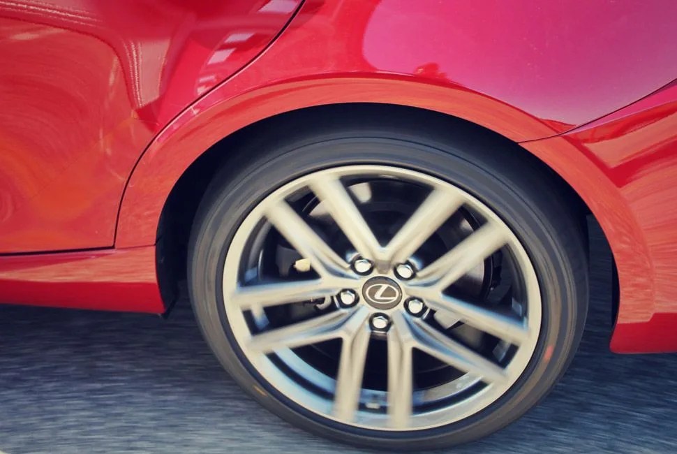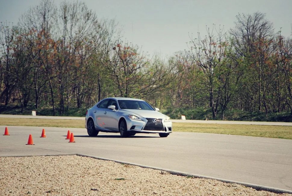 The adaptive Variable Gear Ratio Steering didn’t feel artificial; the noticeably shorter turn-to-turn was an ally when tackling twisties, and generally beefy steering feel was what really sold us on the new Lexus. The IS borrows some of its steering and suspension parts from another favorite Lexus of ours, the GS, and the Adaptive Variable Suspension handily controlled roll and pitch. It was clear we weren’t in a go-kart, but when pushed, the IS didn’t exactly wallow from side to side, either. While racing around the track, we left the AVS dial in Sport+ (umm… duh) and were rewarded with super-sporting, Lexus-like luxury. The IS stayed comfortably planted on the straights and maintained an even keel through hairpins, reminiscent of an Olympic speed skater in a smoking jacket (which is a thing).