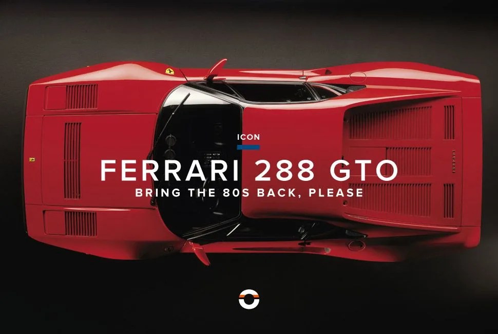 But just as the 288’s homologation process neared completion in 1986, tragedy struck. Two Group B drivers, Henri Toivonen from Finland and Sergio Cresto from the U.S., perished in their Lancia Delta S4 when they careened off a cliff during the Tour de Corse rally in Corsica, France. Consequently, the FIA governing body banned the Group B supercar series. The 288 GTO would never lay tire on a Group B racetrack. 272 cars had been produced; all of them went to public sale. Though the ignominious timing of Group B’s demise destroyed any hope that the 288 would become a racing legend, the car had all the makings of one.
