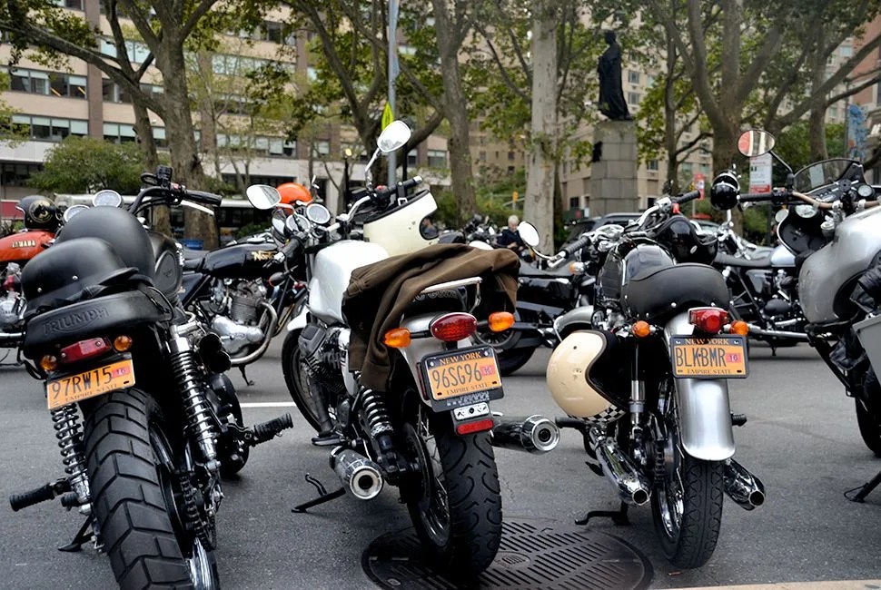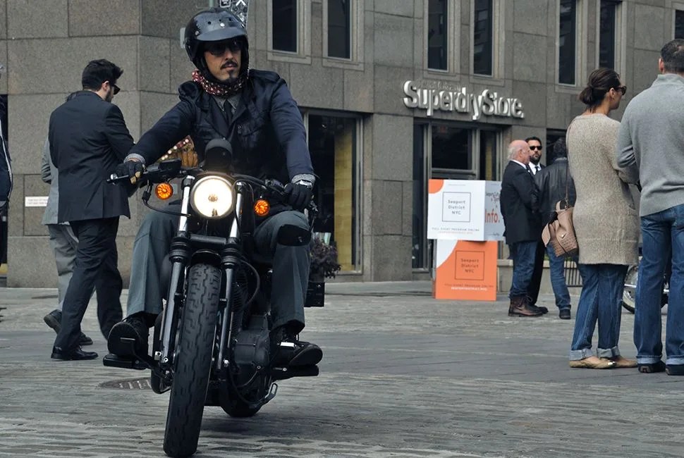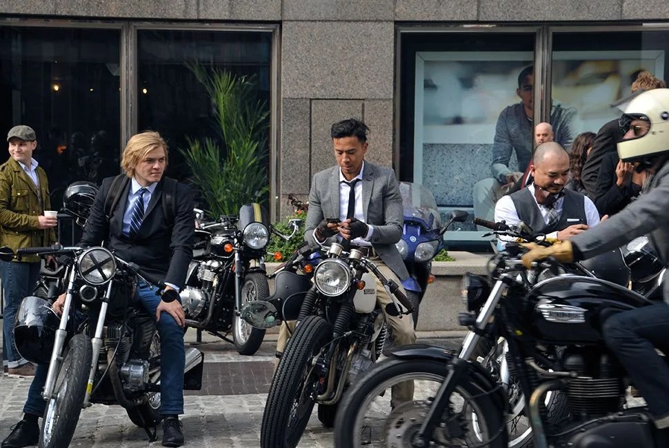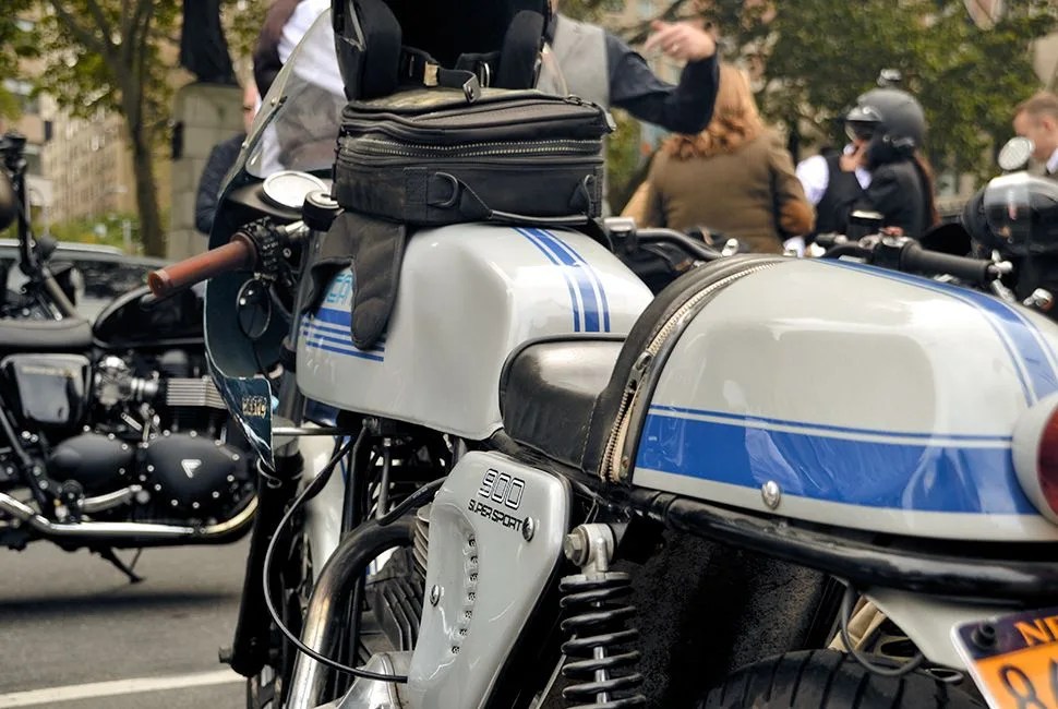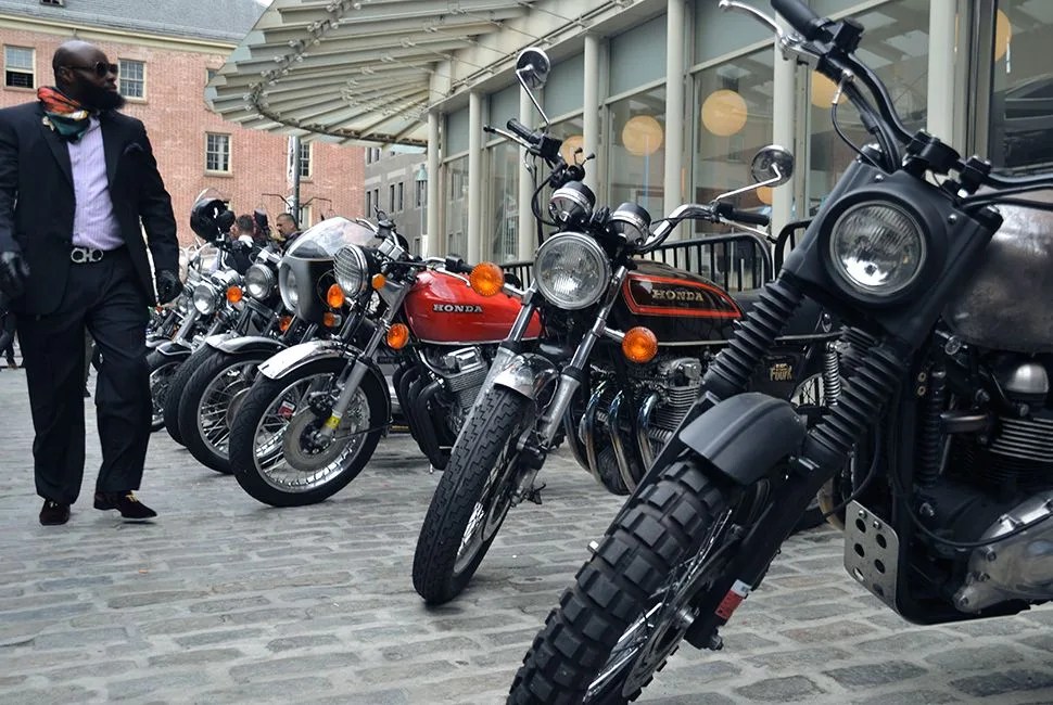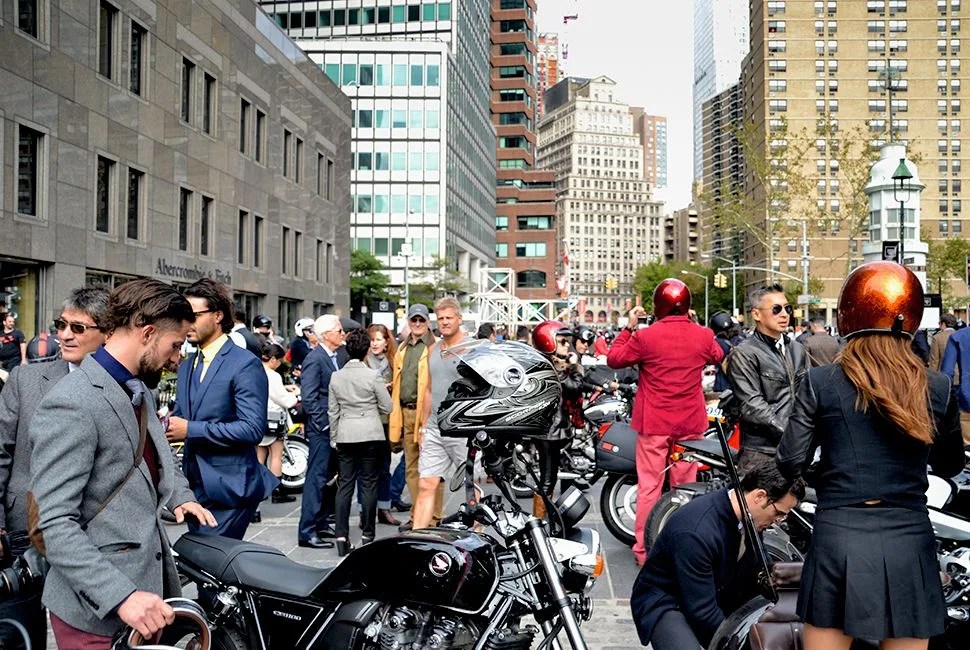 Once the ride starts and the deafening sound of over 300 motorcycles fills South Street Seaport, it’s impossible not to smirk. The ride snakes through Lower Manhattan up to Lincoln Center (Church Street is momentarily blocked off to allow the ride to come through unhindered) and passersby snap photos. It is, for one morning, the best of Manhattan’s sidewalk style, all on the move — loud, unashamed and dapper as hell.