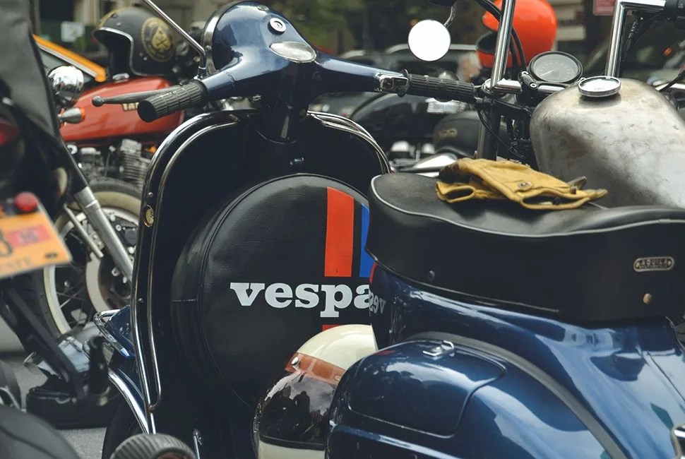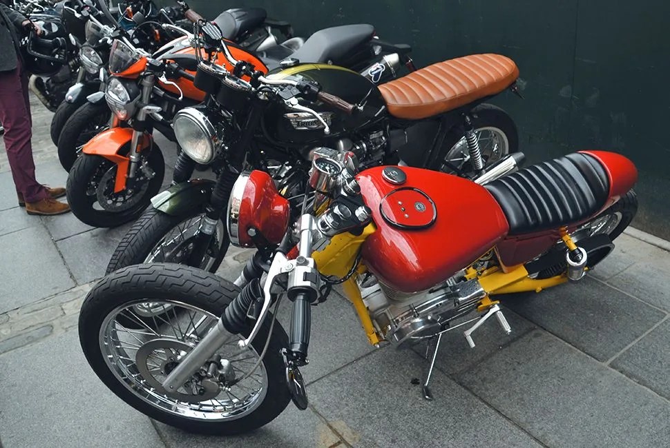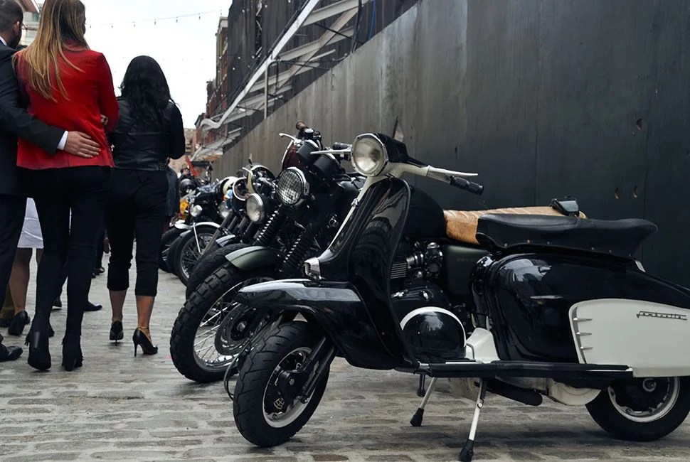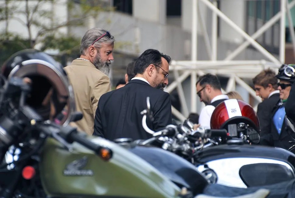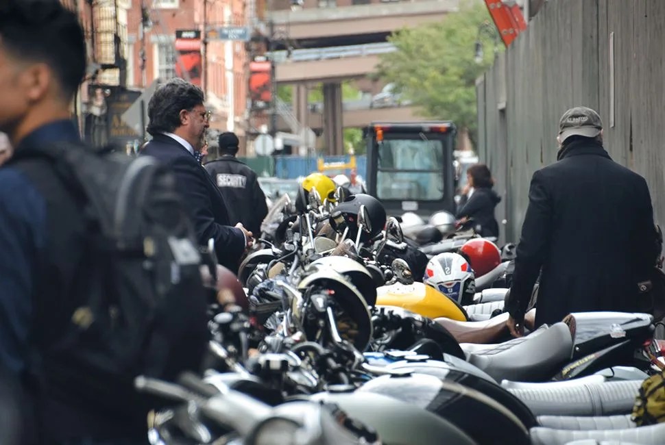 If you can work past the spectacle of blazers replacing proper jackets and dress shoes replacing boots, you’ll see and hear a genuine affection for bikes that goes beyond them being a fashion accessory. Guys talk about the work completed and ongoing on their custom bikes, and others affectionately point out models on display that they once owned.