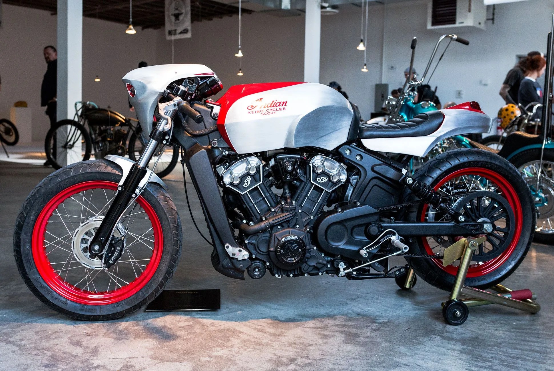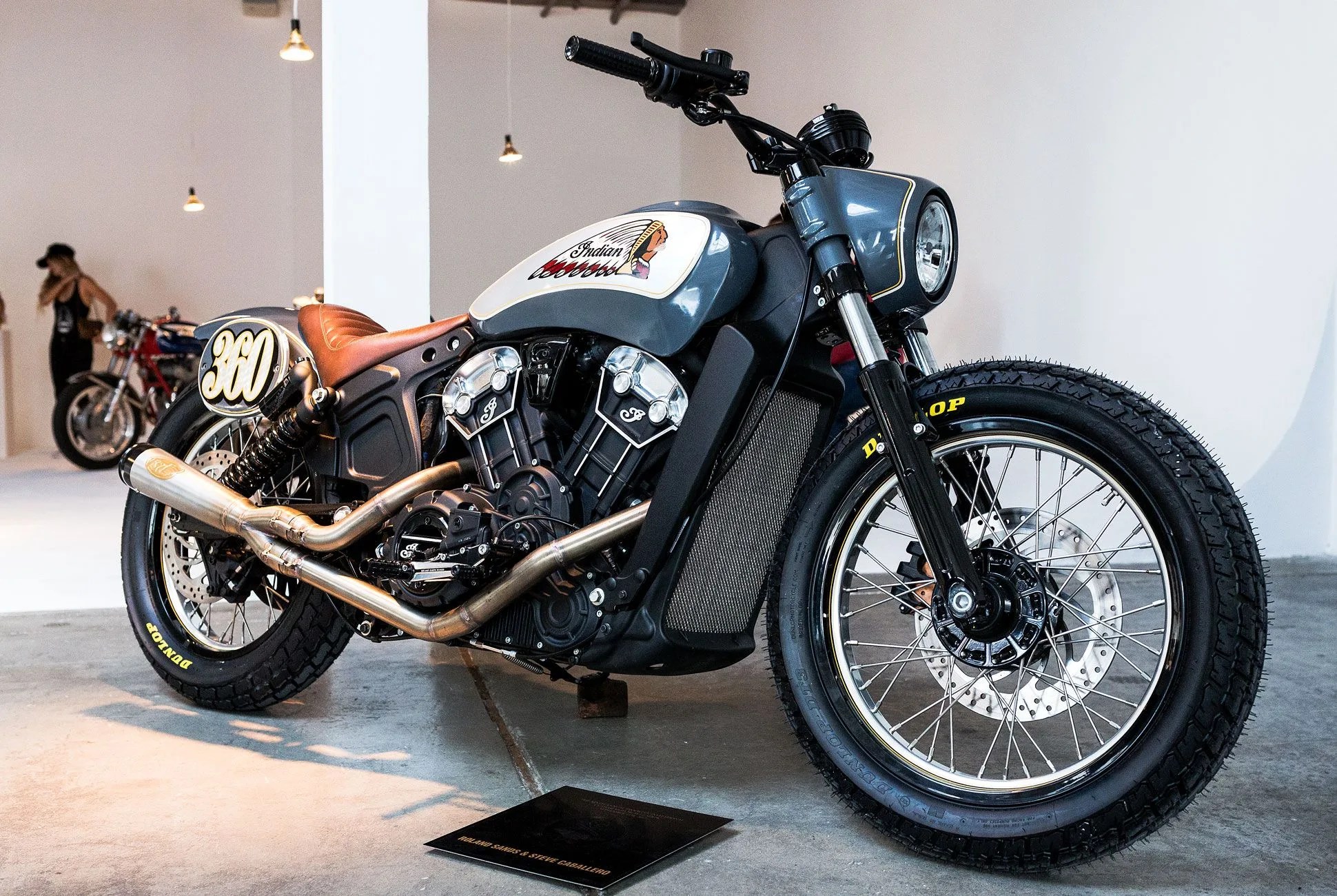Today’s world of custom motorcycle building is overflowing with raw and natural talent. It’s a blessing for us, the consumers, the riders — but it’s somewhat of a curse for the builders. How do you stand out in such a rich pool of talent? That’s the task Indian Motorcycle Company set forth for three top-level custom bike builders — Keino Sasaki, Satya Kraus and Roland Sands, in collaboration with skateboard legend Steve Caballero — to see how each would tackle the new Indian Scout Bobber. The Scout Bobber provides a great foundation for artistic expression, it’s a blank canvas of sorts. So it’s no surprise that each shop created a unique work of art that clearly shows what sets them apart from each other and the rest of the industry.