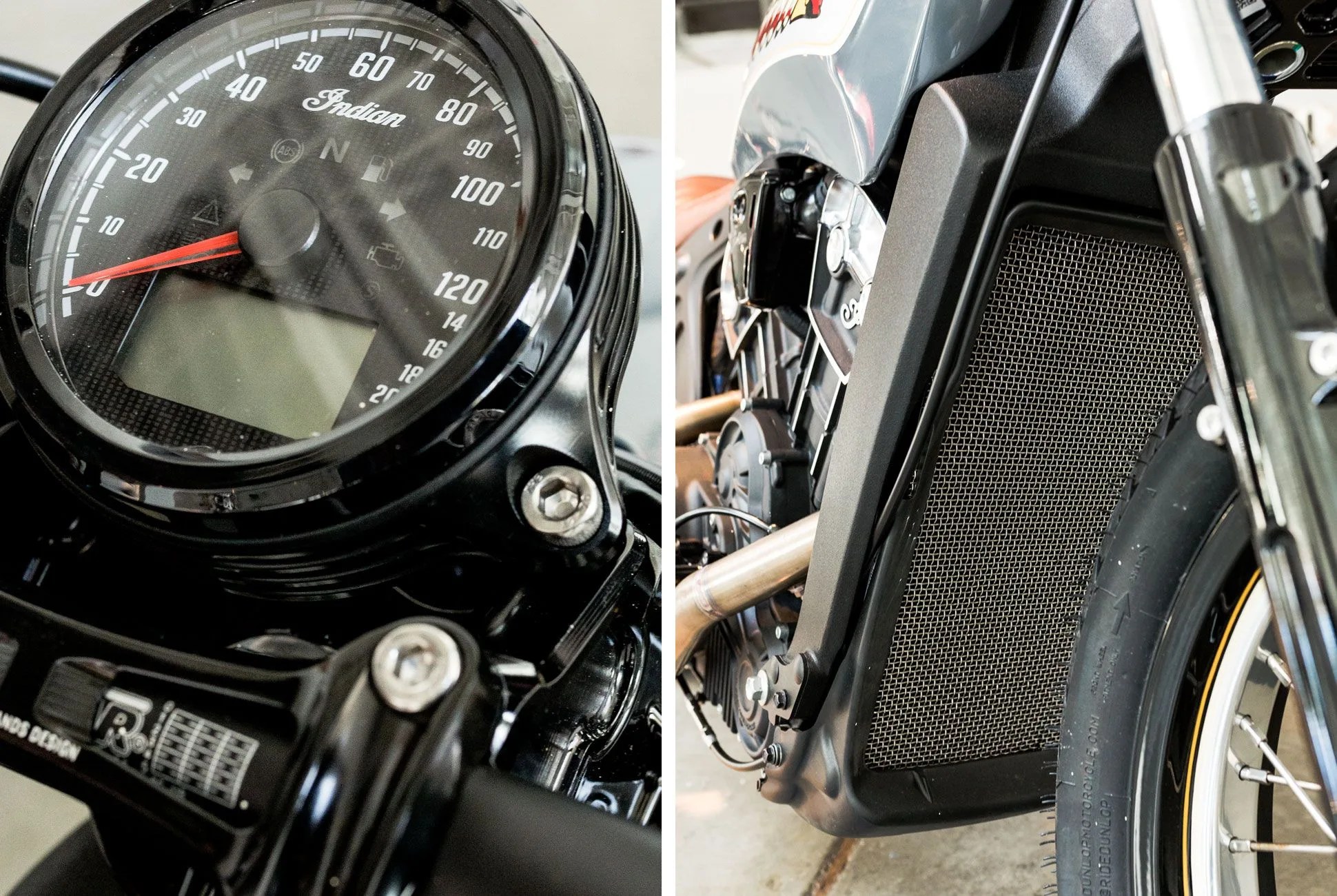A: It was really Cab’s direction of what he wanted to go with. I just threw some ideas out there and sketched up a couple things for him. But it really came from flat tracking. [Indian Motorcycle Company] really simplified the original Scout with the Bobber and it’s a good platform to do a street tracker off of. We’re already flat track racing them so we knew where to go with it. And when you put flat track wheels and tires on just about anything, it makes it looks cool.