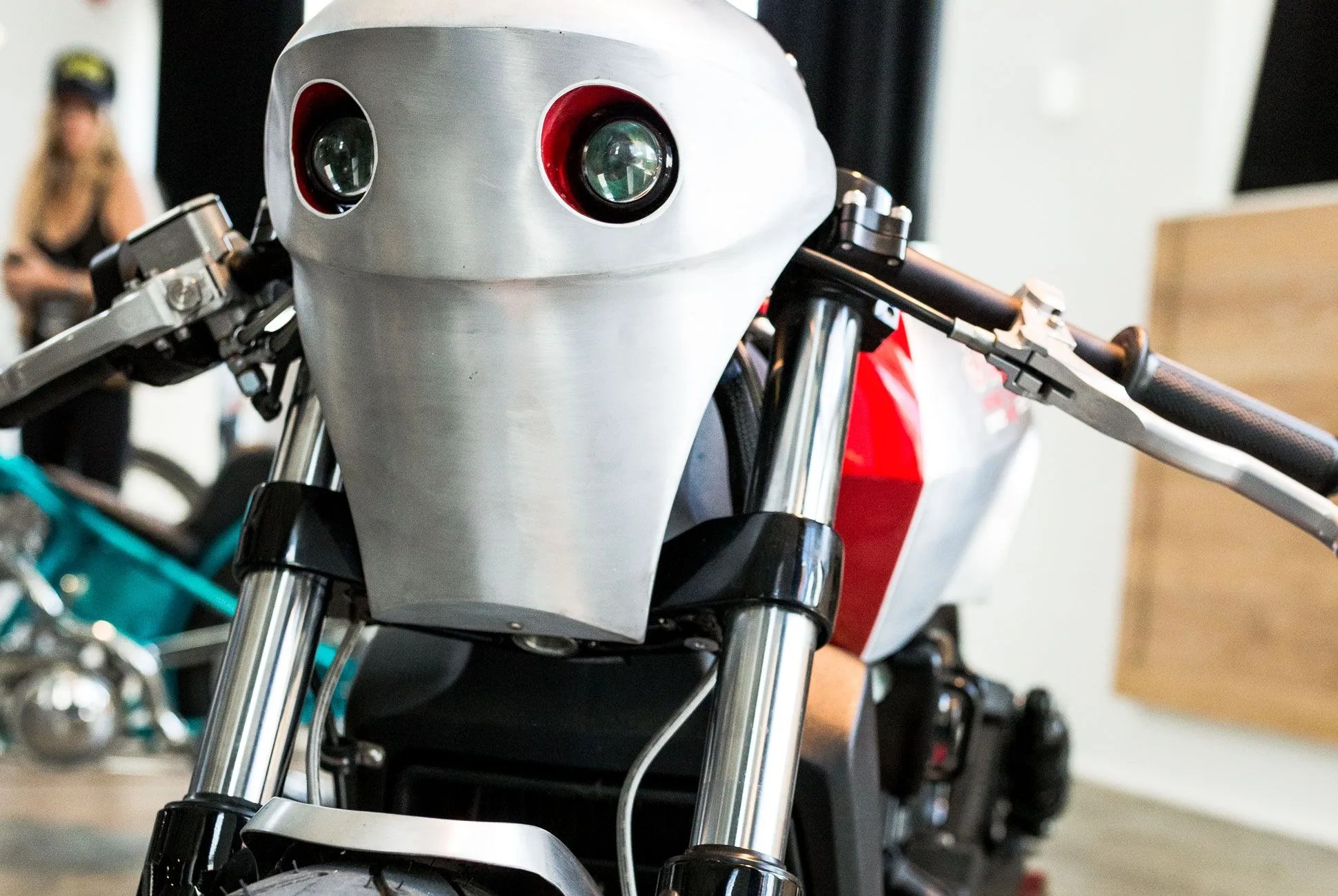 A: I take a really organic perspective when building motorcycles. A lot of people will draw and sketch things out — and I’ll sketch a little bit, here and there — but I really take a three-dimensional approach. I need to put the bike on a lift and walk around it, get underneath it and see what it’s all about, then see how it handles and how it rides. Then I’ll look at the geometry and how we can improve the performance of the bike, because that’ll really change the styling of the bike too. Aesthetics sort of follow the function, but when I get into a build, I always know where I want to go with it.