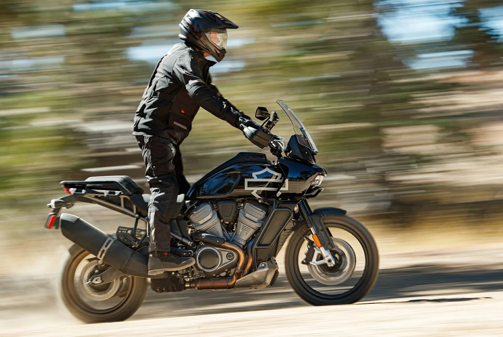 At the Pan America’s heart lies Harley’s newest V-twin powerplant, the liquid-cooled Revolution Max. The burly 1,250cc engine cranks out at least 140 horsepower and north of 90 pound-feet of torque, ensuring this ADV has the grunt to leap over or blast through practically anything man or nature can throw at it.