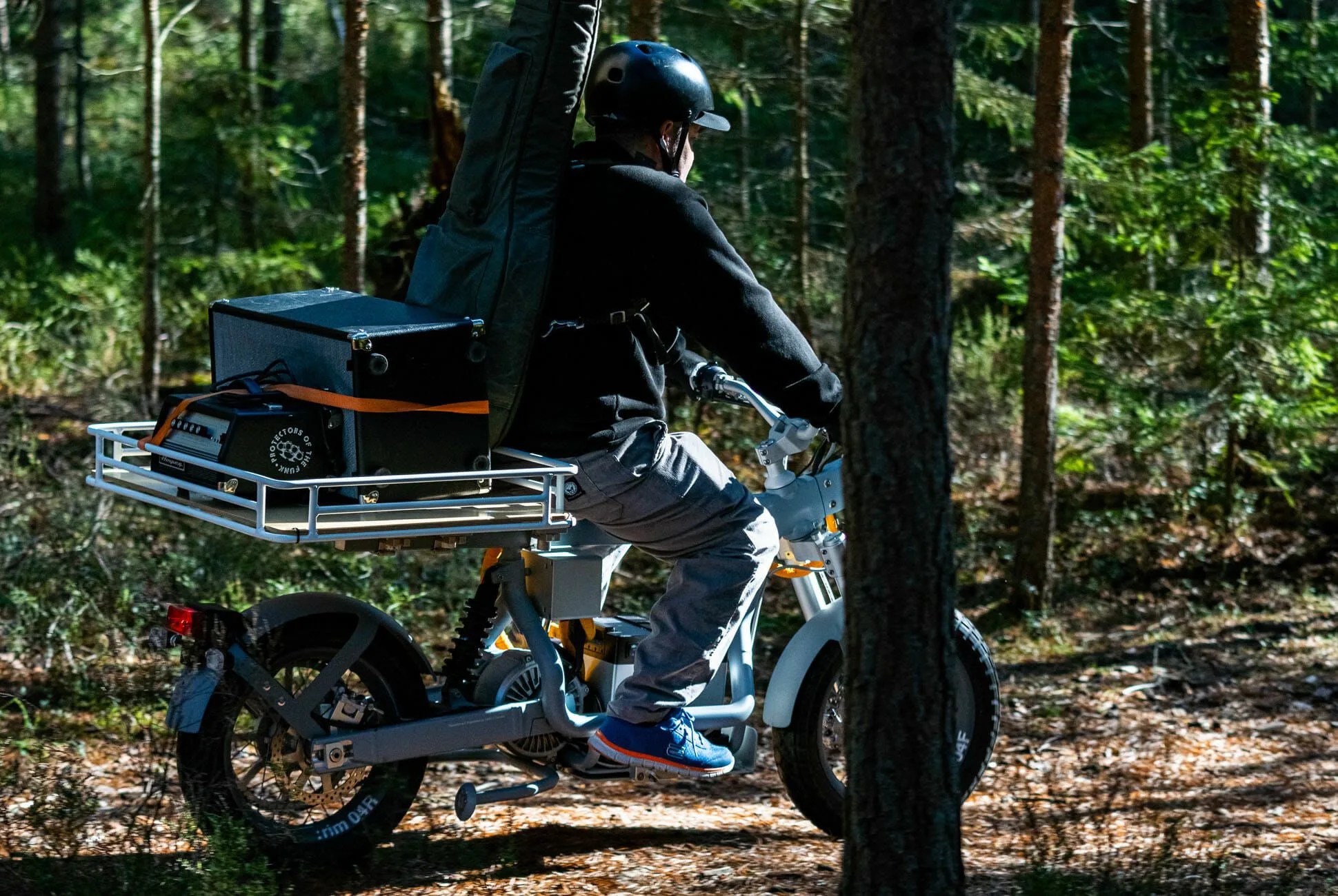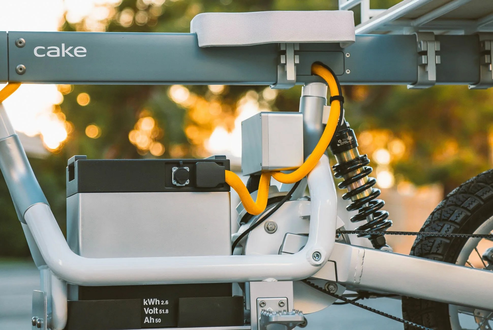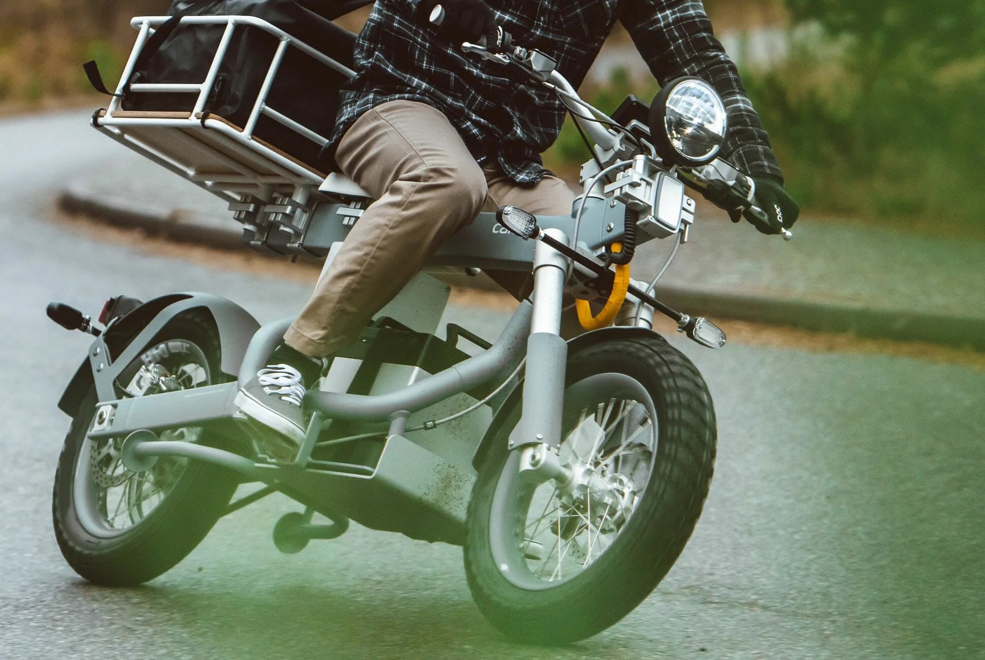 The Ösa, which Gear Patrol’s Outdoor & Fitness editor (and motorcycle nerd) Steve Mazzucchi describes as the bike “we’re kinda obsessed with,” has an electric powertrain and minimalist styling, just like its Kalk sibling, but they diverge quickly from there. The battery is mounted as low as possible, to make room for a long “uni-bar” beneath the seat, which Cake says was inspired by a workbench. This simple metal form is designed to make it easy to clamp accessories — bags, racks, baskets, tools, etc. — directly and firmly to it. The company says users can whip up more than 1,000 different combinations by mixing and matching said accessories.