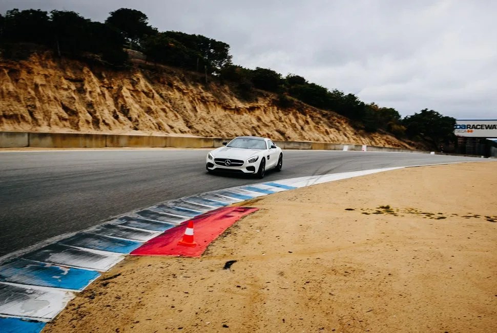 Then the Mercedes-AMG GT S hurtles over the curve, pummeling the apex so hard that it seems to push the track a few inches deeper into the earth.