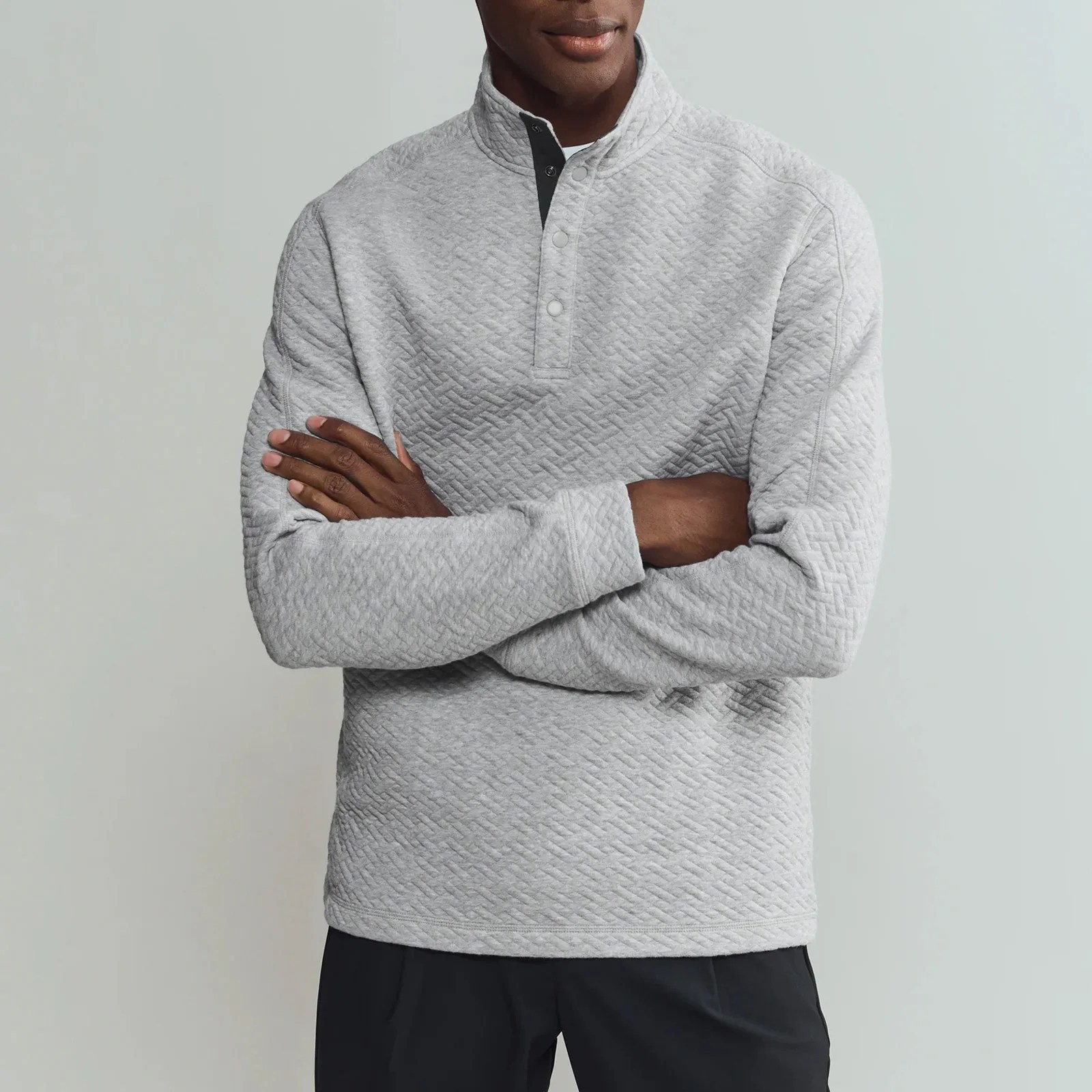 The quilted pattern of this cotton pullover makes it stand out from similar versions from other brands. We also appreciate the hidden zipper on the lower right hand side. It’s there for ventilation and makes the pullover easier to take off.