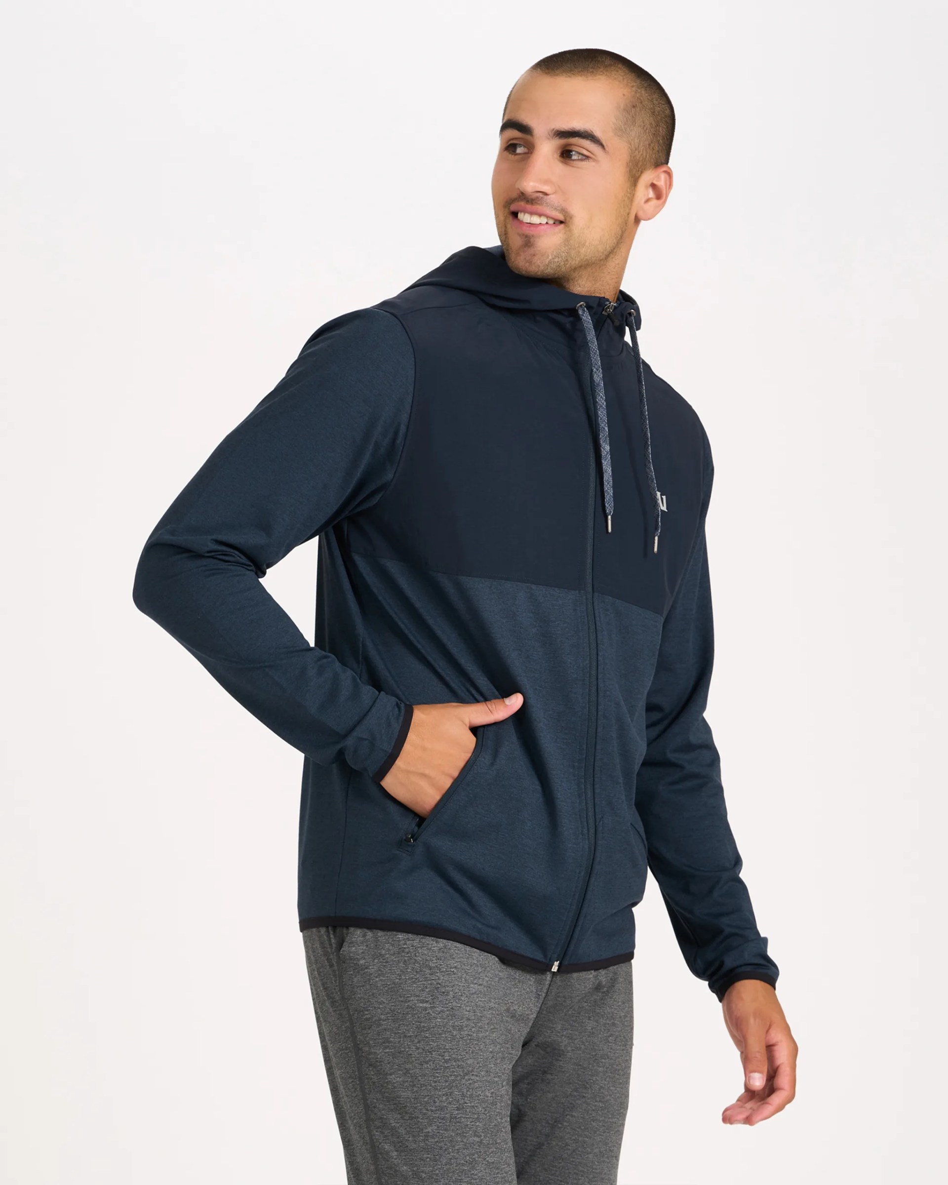 The Sunday Element Jacket protects you from the elements by combining the Vuori’s soft performance stretch knit with a protective nylon overlay. The result? Added protection and a two-toned aesthetic.