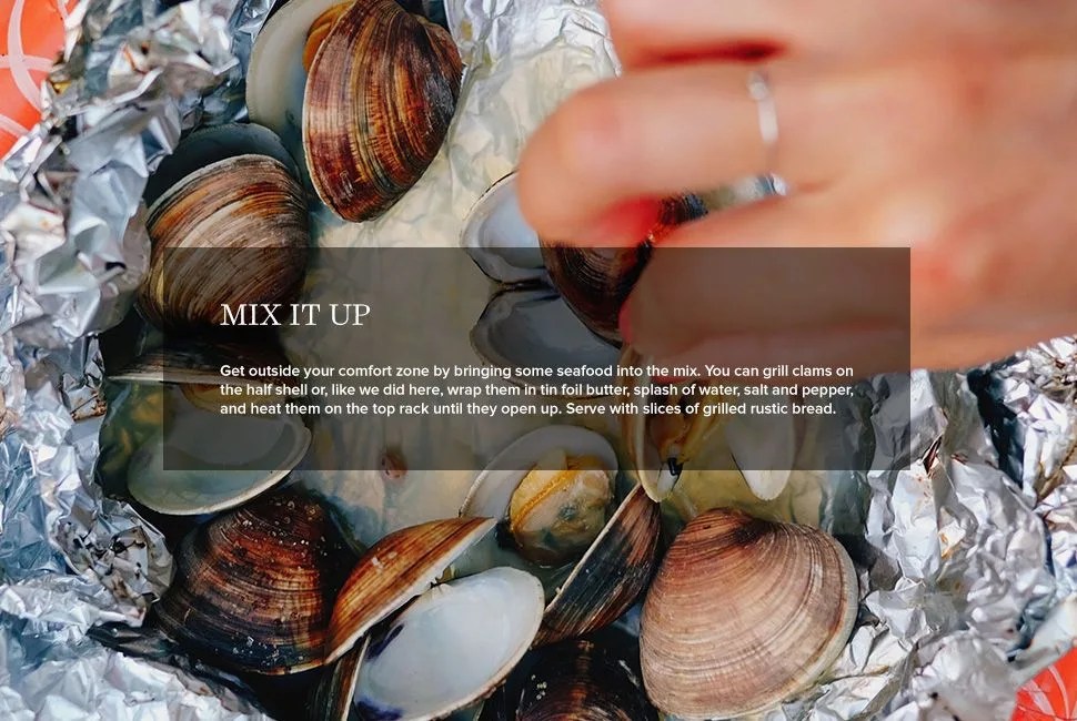 2 Meat Hopefully you’ve done 5 minutes of pre-planning here and figured out what you’re going to prepare. People love variety but they love taste more so make your selections simple. Burgers and fresh corn. Seafood and asparagus. Brats and wings. Keep it simple and make it good. Everyone loves marinades and hot sauces. Buy or prepare a few sides (greek salad, red cabbage slaw). Go complex and you defeat the purpose of an O.G.M.