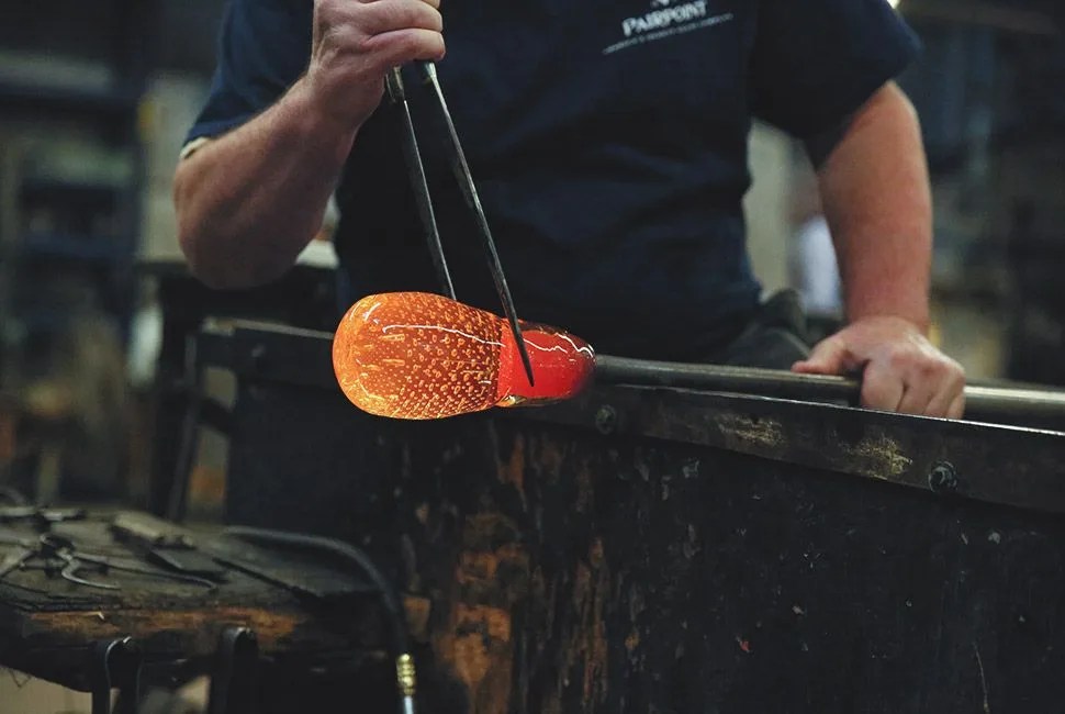 “Gary and I aren’t designers, we just assemble teams,” says Tulman. “We just put together the overall excitement to make everyone want to produce these things.” There is an open dialogue between the employees at Pairpoint. The management and the craftsmen (glassblowers, glassmaker, glass etcher) talk as a team in the product-development stage, as they naturally should — these men are the brain trust, with well over a century of combined years working at Pairpoint. Master Glassblower Guy Maxwell has been working at Pairpoint for 38 years. Iain Ross, another master glassblower, has been working with the company for 26 years. He followed in the footsteps of his father, who was also a glassblower at Pairpoint.