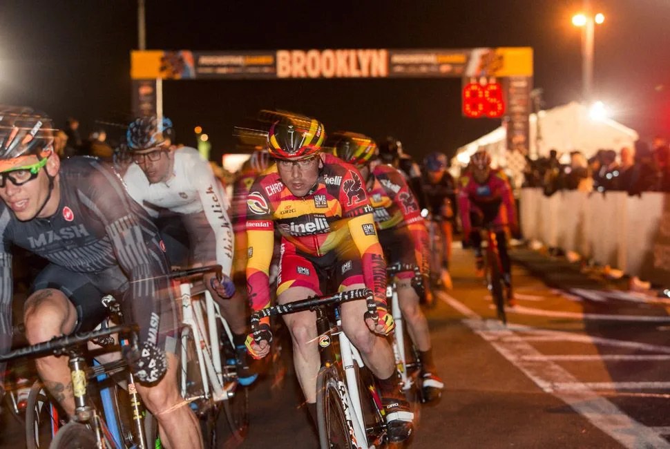 As thousands poured into the Brooklyn Cruise Terminal for the eighth edition of the well organized and hugely sponsor-backed event, it was hard see much of the race’s humble beginnings (or even the event as we saw it in 2013), but what the race may have lost in under-the-radar cachet, it’s gained in pure speed. To qualify for the main event you would’ve needed to run a 1:33.6 over a hot lap of the 0.77-mile course (a screaming 29.6-mile-per-hour average), and the winner, Ivan Ravaioli, averaged 27.1 miles per hour over the 40-minute race. As a result the Crit is now attracting huge global competition: only two of the top 15 finishers in the men’s race were from the US.