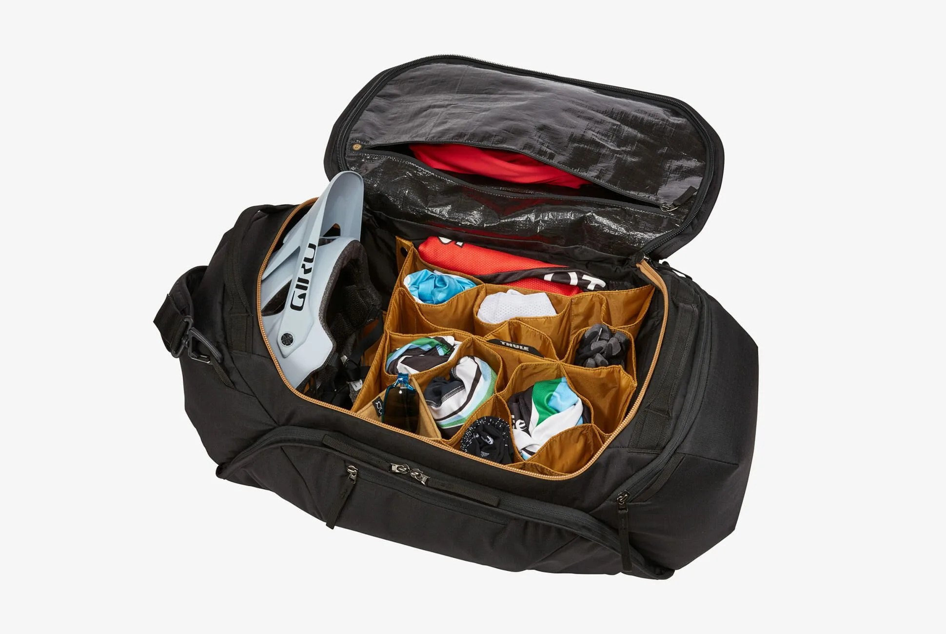 Missing the window to ride to work because you can’t find your lights, you forgot your shoes or you misplaced your rain jacket is annoying. This duffel organizes everything you need for riding in one spot. The duffel has a flexible accordion storage system with various size cubbies to hold clothes, shades, computer, snacks, socks, gloves, water bottles and more. Bigger sections separate and protect helmet, shoes and tools, as well as wet and stinky kit you want to seal away when you’re at work. You can wear the crossbody duffel on your back, and the strap clips out of the way when you want to leave it loaded but open in your mudroom or chucked in the trunk of your car.