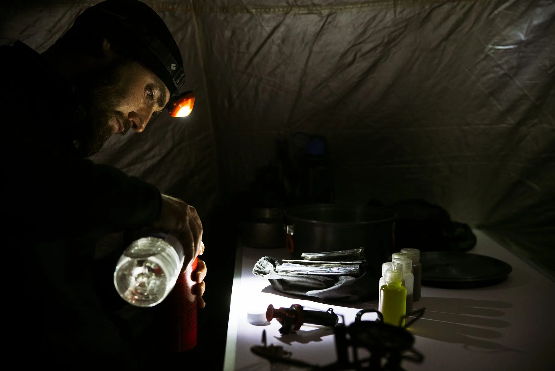Climbing Ojos del Salado the safe way calls for a multi-stage expedition attuned to the silent rigors of acclimatization. You gradually rise higher over the course of eight to ten days, averaging jumps of 1,500 feet or fewer each day over 10,000 feet — “climbing high and sleeping low,” as the experts urge. In our warm truck on the way to Santa Rosa, with Tame Impala’s “The Moment” blasting — It’s getting closer, oh / It’s getting closer — we got the easy part out of the way: 10,000 feet gained, almost no effort. Our gear and bodies behaved basically normally as we pitched camp in the dark, by the dim outlines of the lake. Soon we disappeared inside -40-degree bags, on top of space-age air mattresses inside tents made for Mt. Everest.