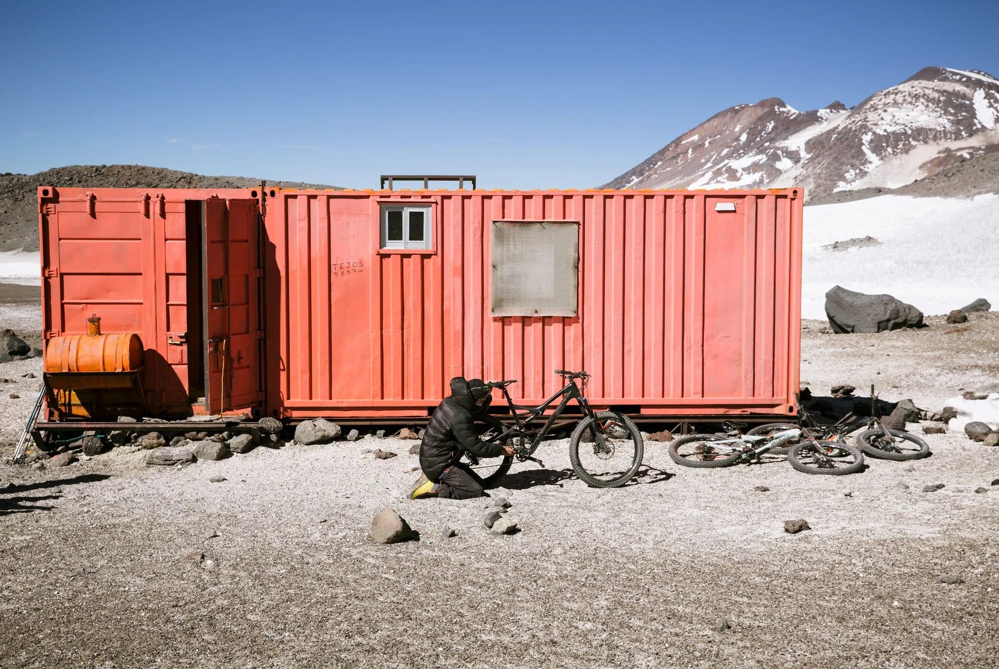 The area’s legendary wind deposited sand everywhere, too, including our mouths. The sun came and went, warming little. We donned our fancy Patagonia kits and took refuge inside the well-anchored, but still flapping food tent, where our 61-year-old head guide, Hernan, who’d summited seven times, made elaborate meals and uttered his best English sentence: “The mountain is life!” Fabaola, his circumspect, 23-year-old assistant, quietly took stock of us. They’d never seen anyone bike down Ojos, and, as professionally as possible, advised us against trying.